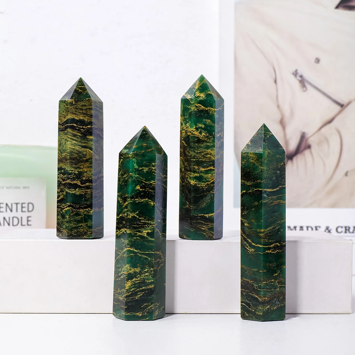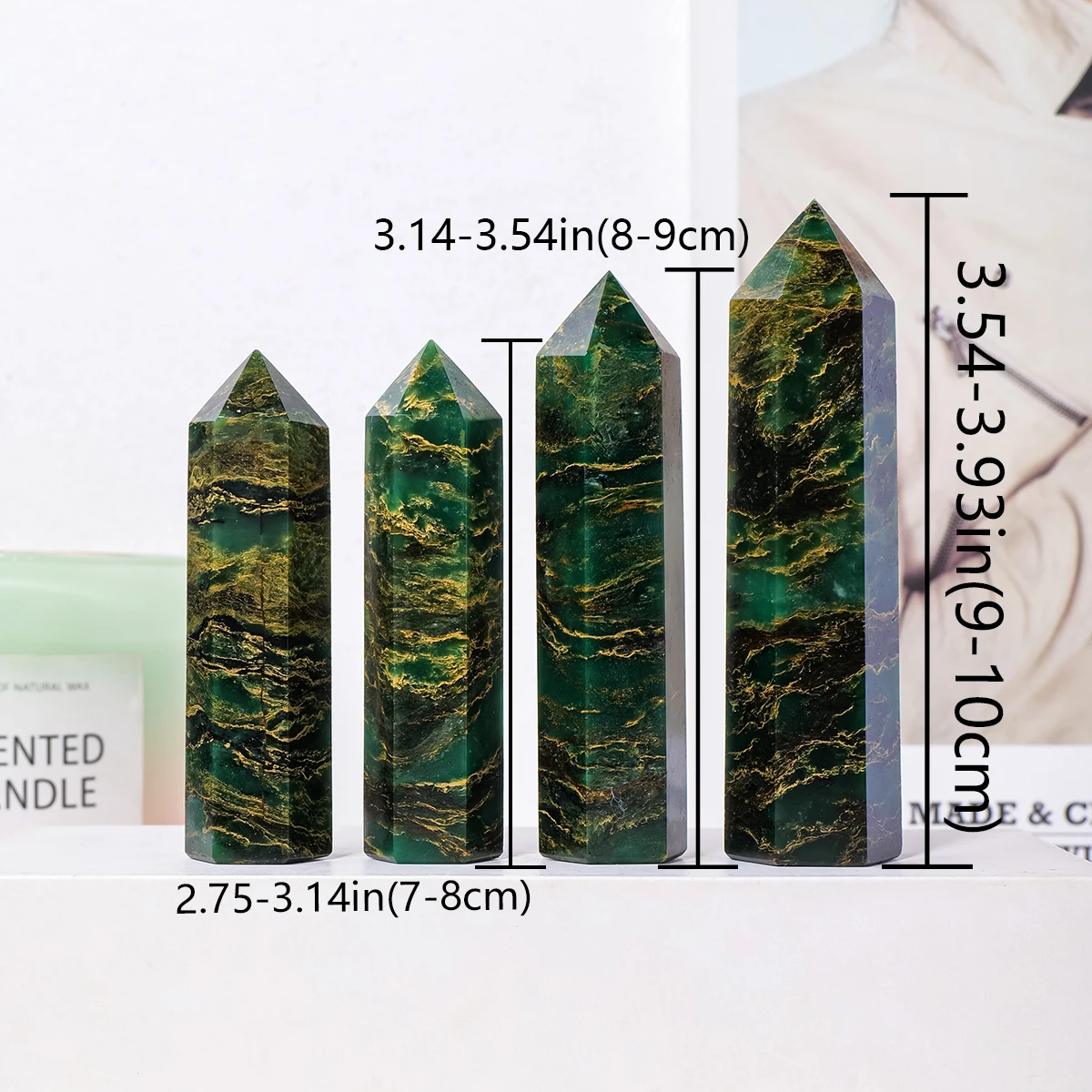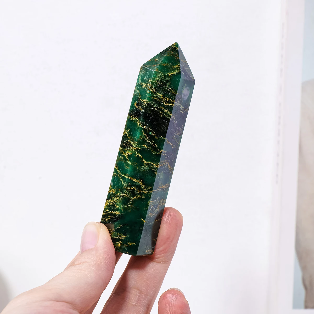 1PC Natural Crystal Emerald Point Healing Crystal Quartz Tower Healing Wand Stone Meditation Stone Energy Gem Home Decoration