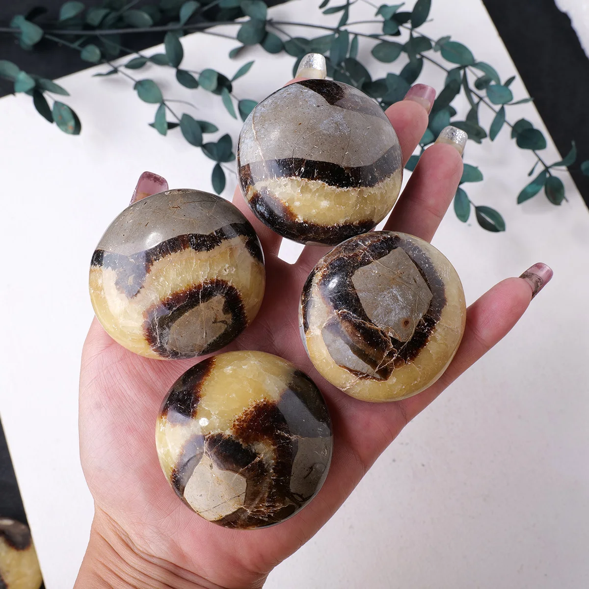 1PC Natural Gemstone Septarium Palm Stone Yoga Meditation Stone Flower Pot Fish Tank Landscape Decoration