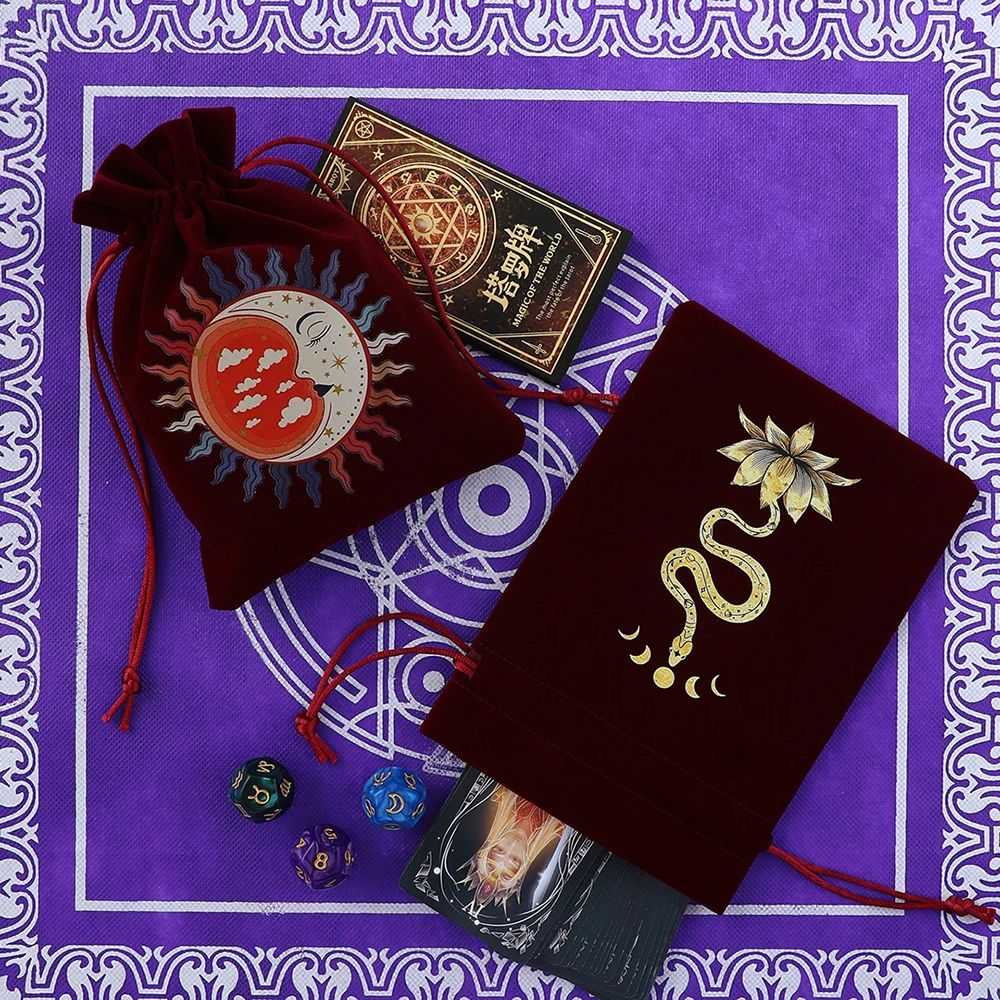【Multi Use Bag!】The tarot bag size is 13*18cm/5.12*7.09 inches; Great for holding healing crystals, dices, witchcraft Supplies and journal.It is also suitable for storing jewelry, dice, cosmetics, and is a unique travel bag