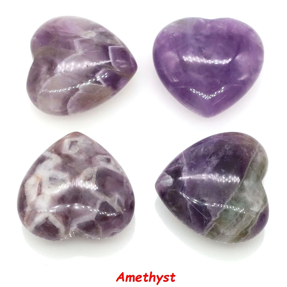 30mm Heart Shaped Statue Natural Stone Reiki Healing Crystal Amethyst 7 Chakra Energy Mineral Gemstone Home Decoration Love Gift
