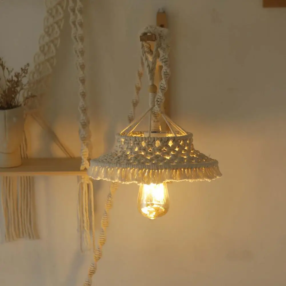 Bohemian Handmade Woven Macrame Lamp Shade Boho Hanging Pendant For Coffee Restaurant Home Wall Decorations Tapestry Lampshade