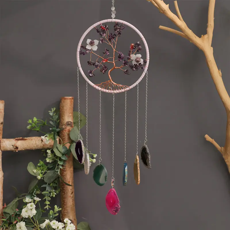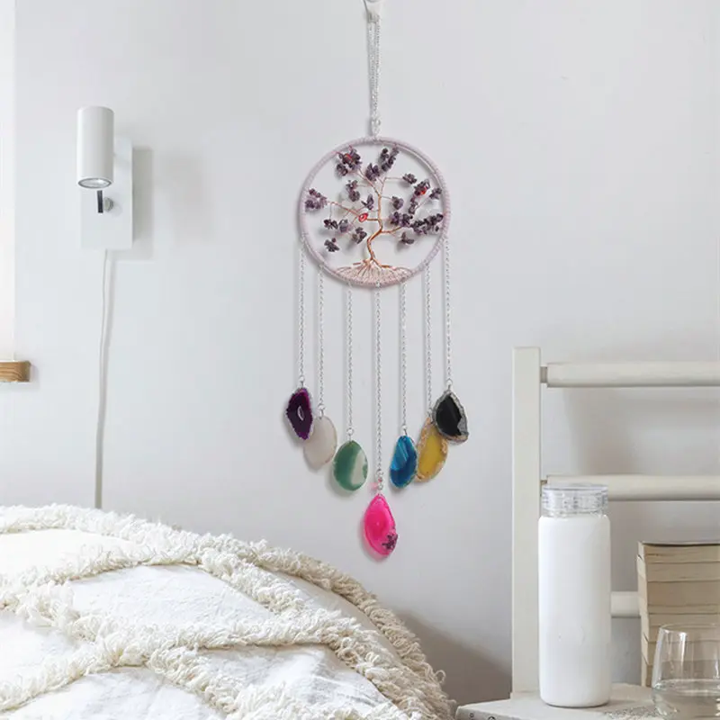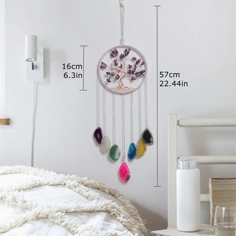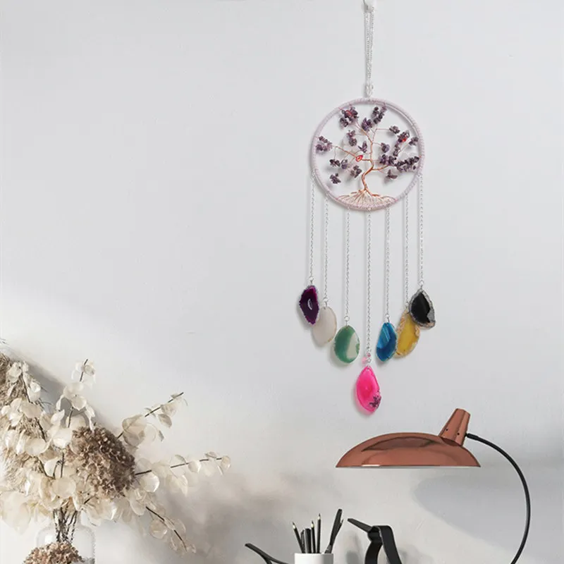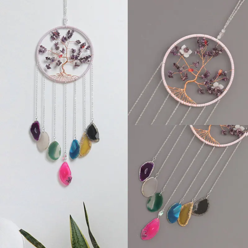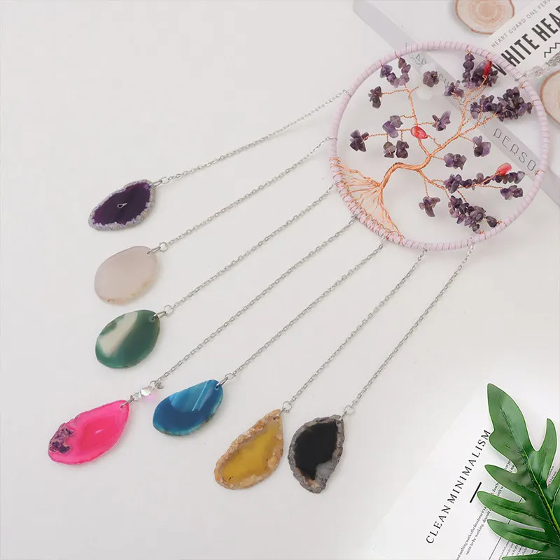 Crystal Gem Dream Catchers Agates Slices 7 Chakra Gemstone Stones Hanging Tree of Life Amethyst Suncatcher Meditation Home Decor