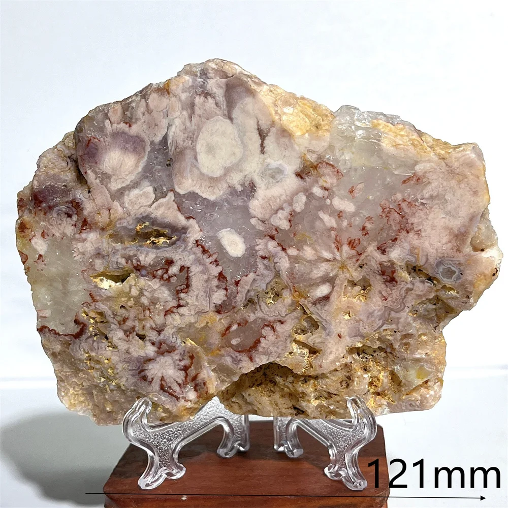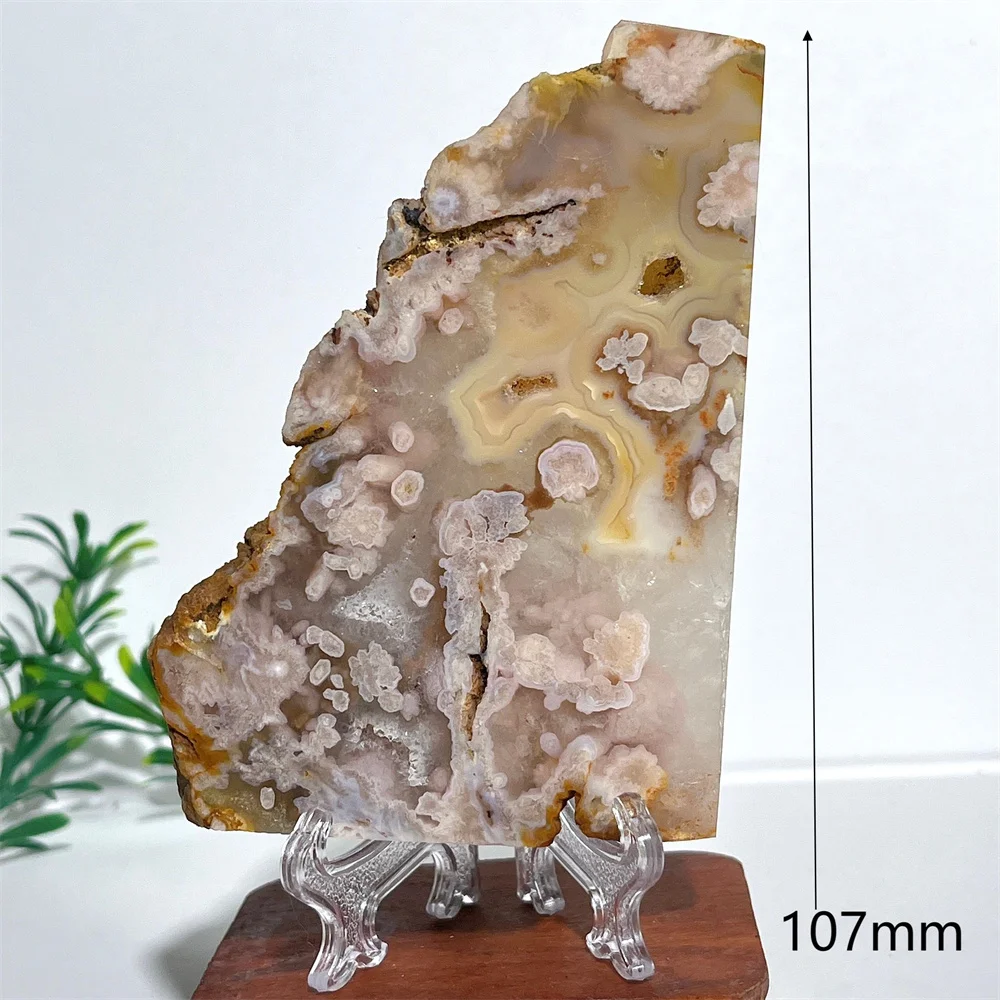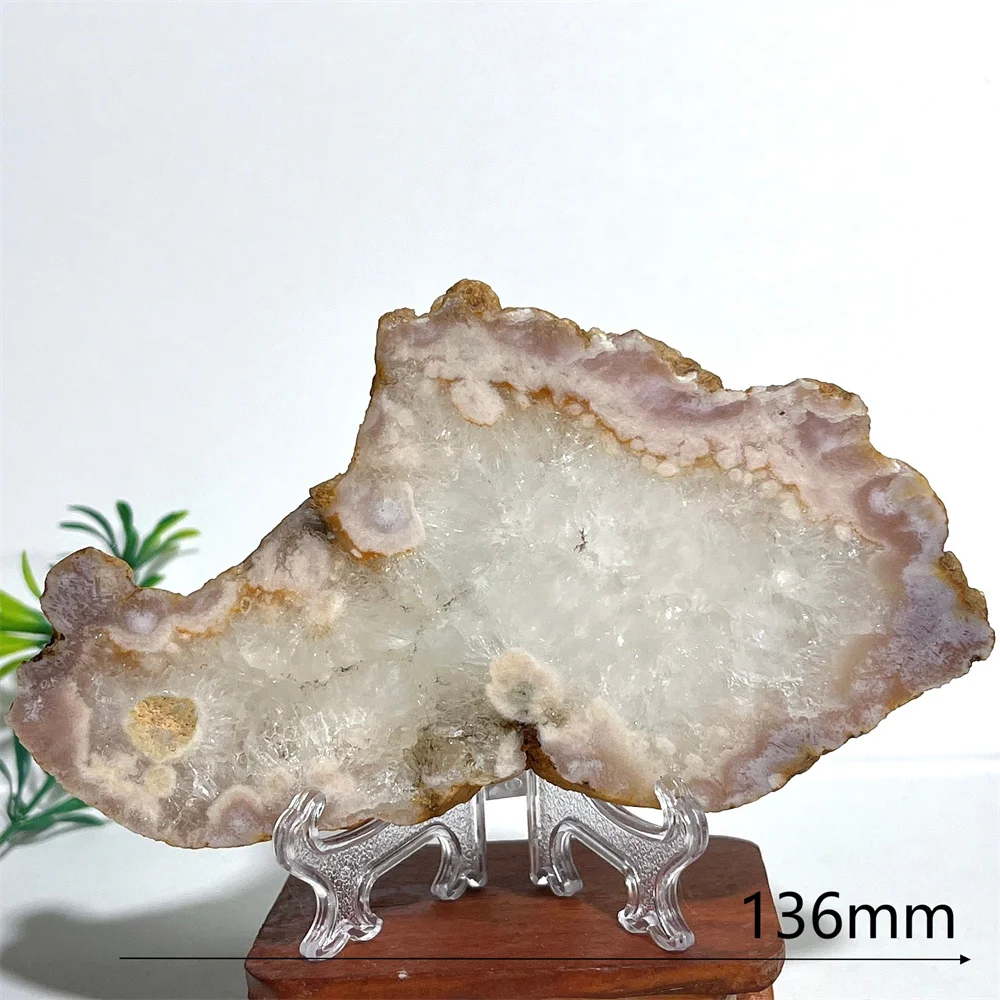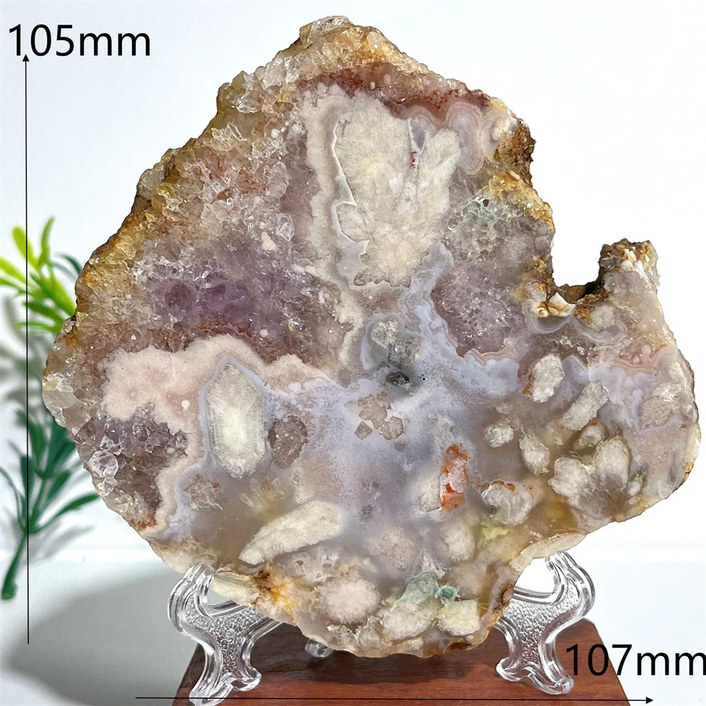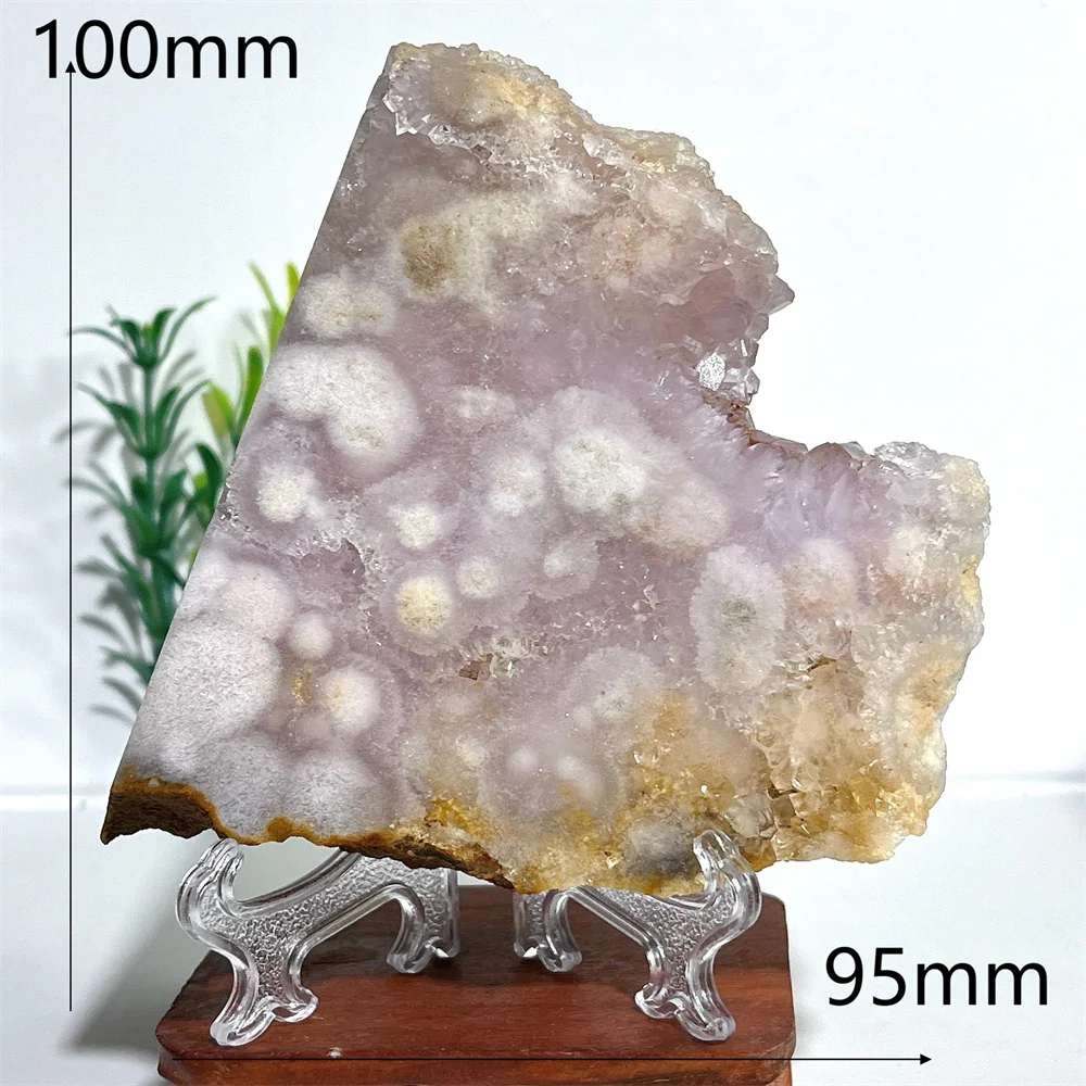 Crystal Natural Pink Amethyst Flower Agate Slab Minerals Energy Gemstone Geode Healing Reiki Spiritual Home Decoration+Stand