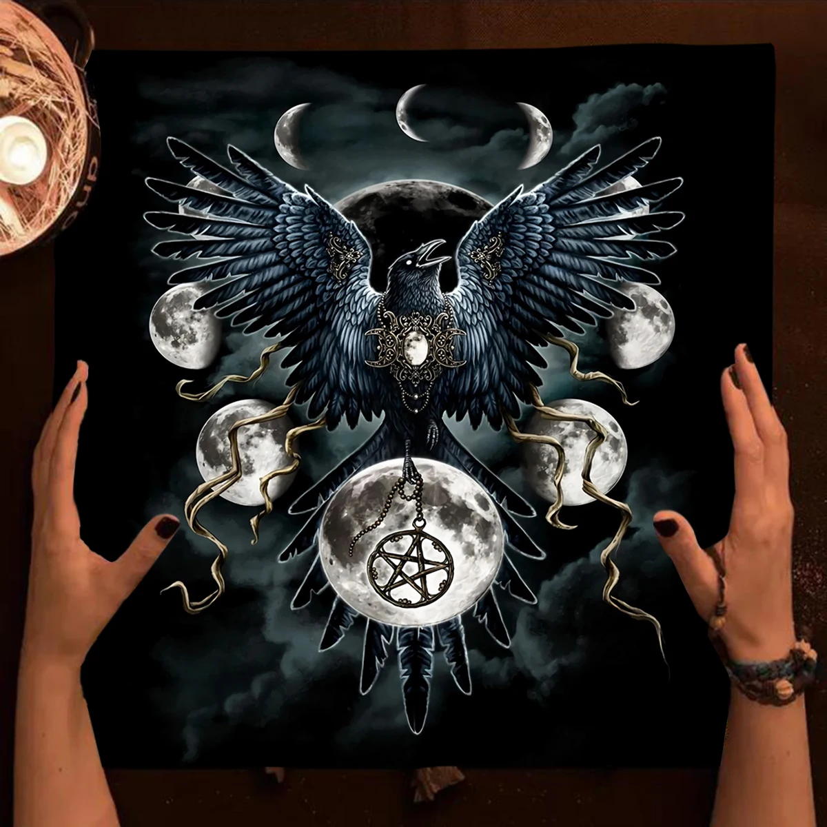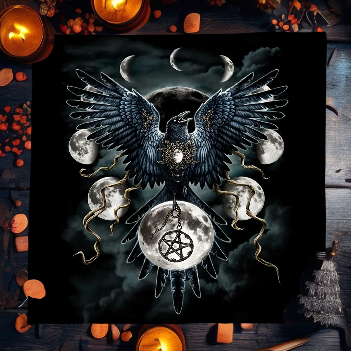 Divination Tarot Tablecloth Eagle Triple Moon Wicca Altar Cloth Moon Phase Pagan Table Cloth Oracle Card Pad Tarot Mat Decor