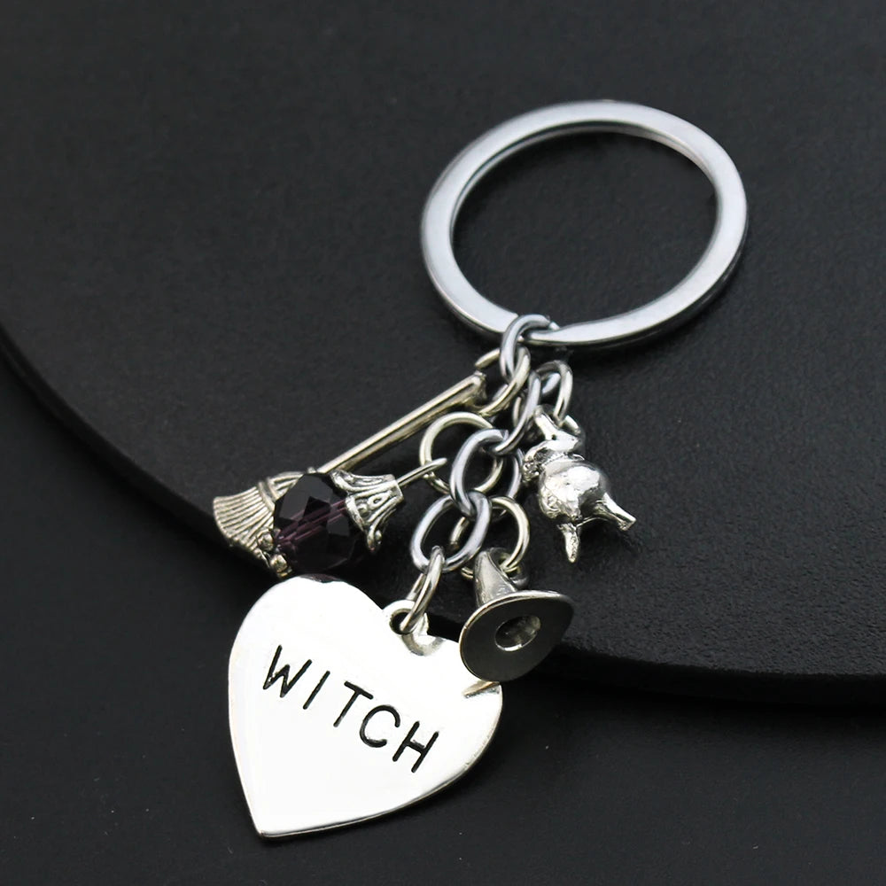 Halloween Purple Bead Sorcerer Witch Keychain For Keys Car Bag Charm Key Ring Fashion Horror Charm Halloween Gift