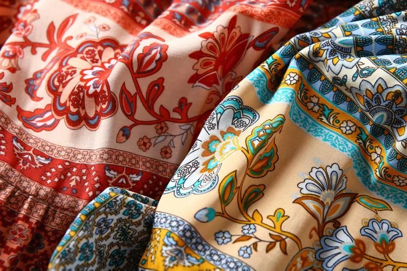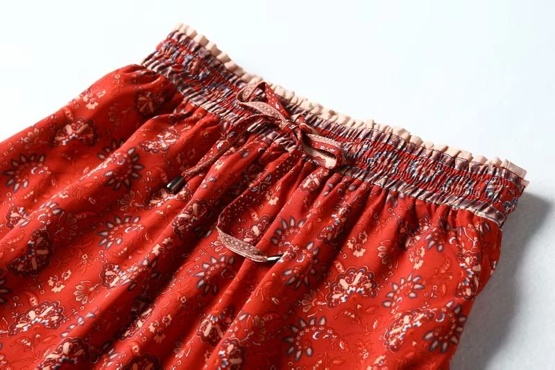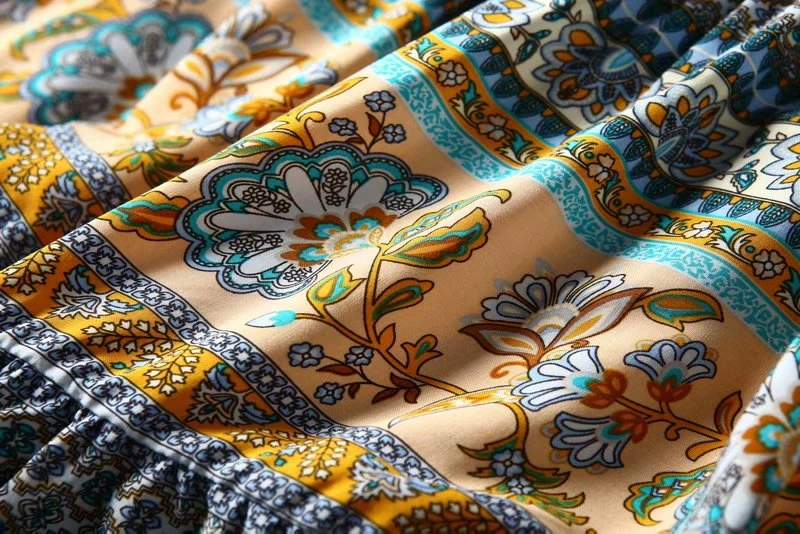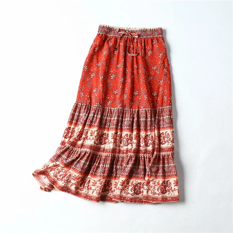 Hippie Queens Women Gothic Floral Peacock Printed High Elastic Waist Beach Bohemian Skirt Ladies A-Line Midi Boho Skirts