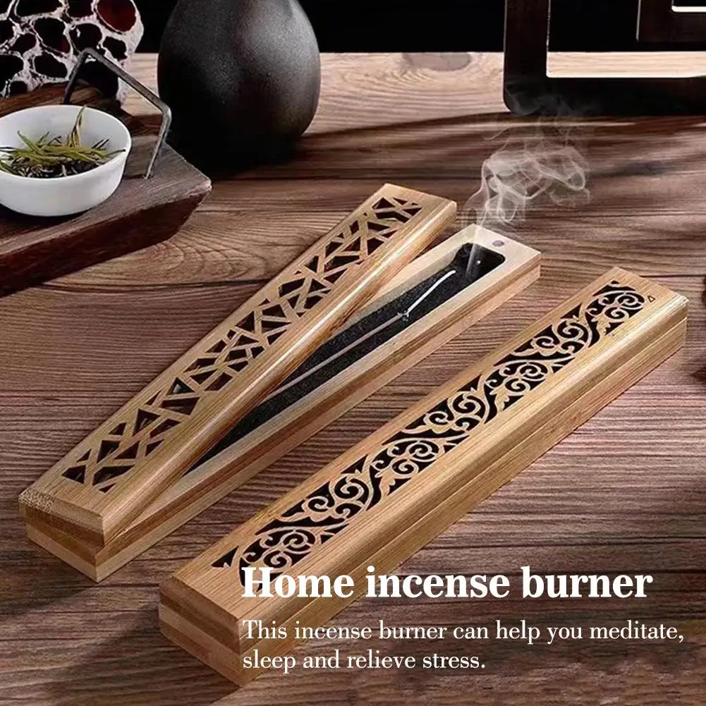 2.With cover design, prevent the wick from being blown away by the wind, safer use. This incense tray holder bamboo incense burner can be used cleanly without worrying about ash spatter