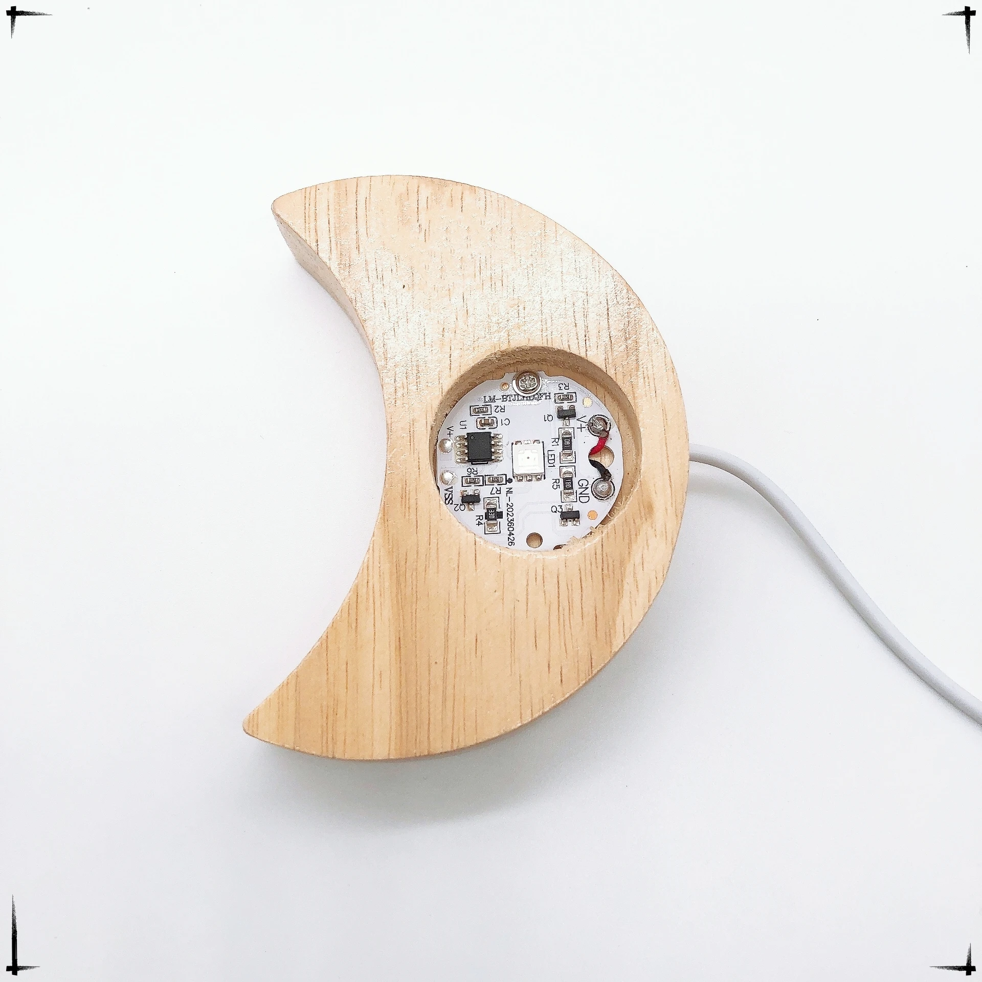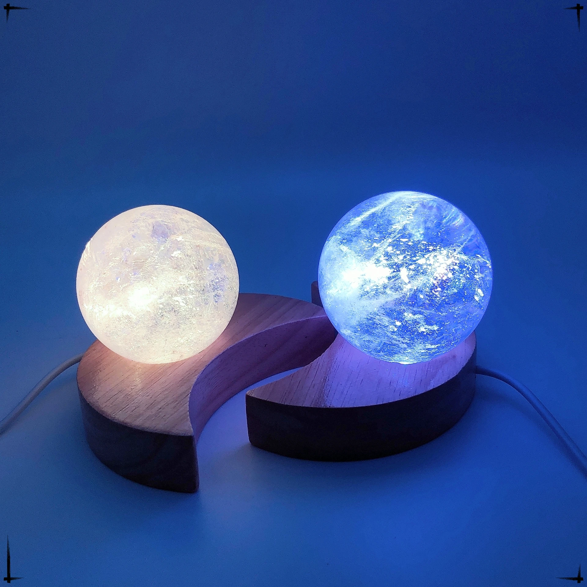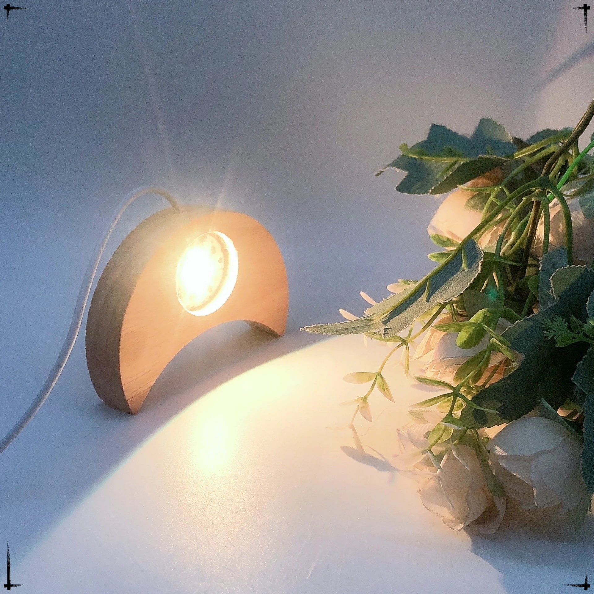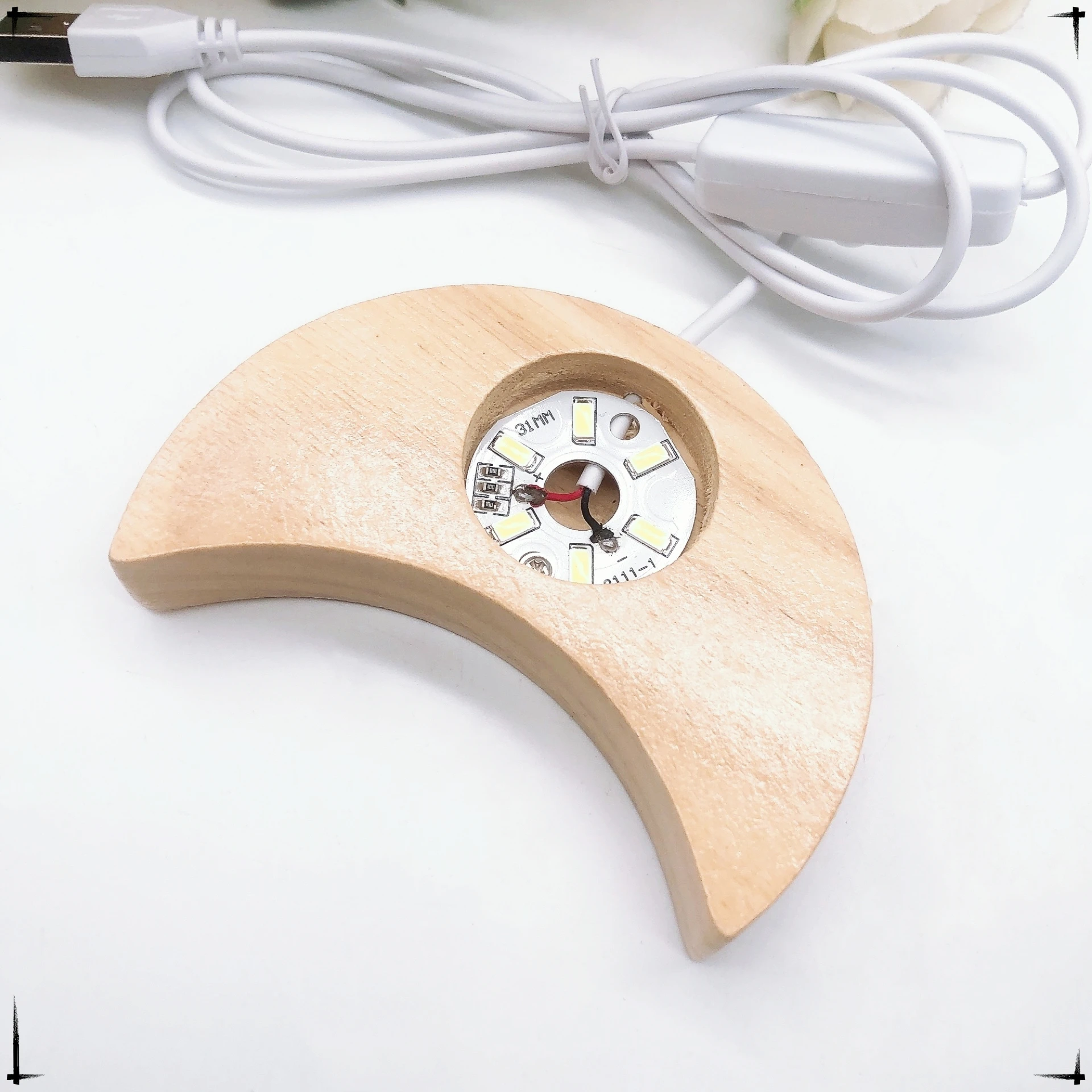 LED Night Light Moon Shape Wooden Bracket Crystal Sphere Stand Night Lamp Stand Crystal Ball Base Sphere HolderRoom Home Decor