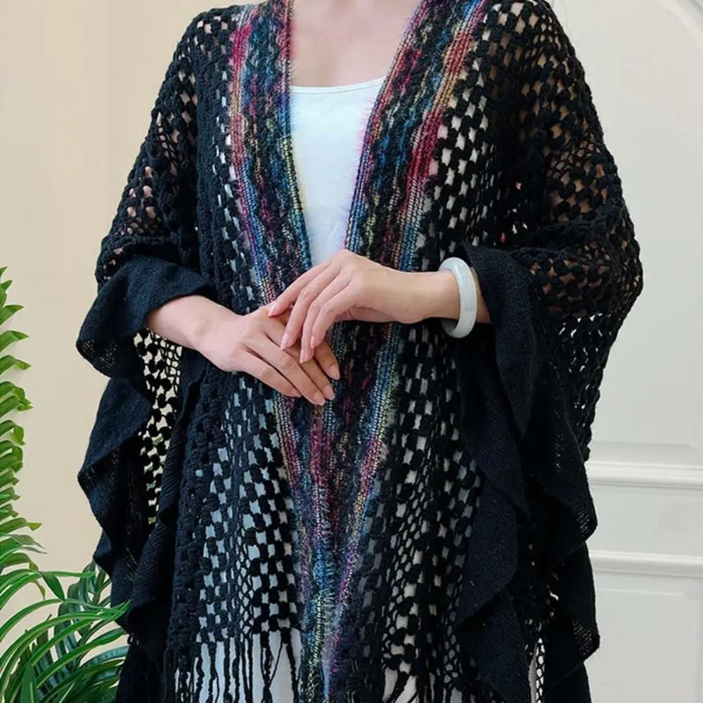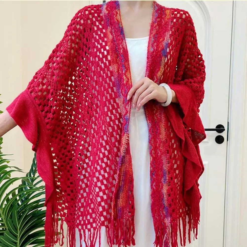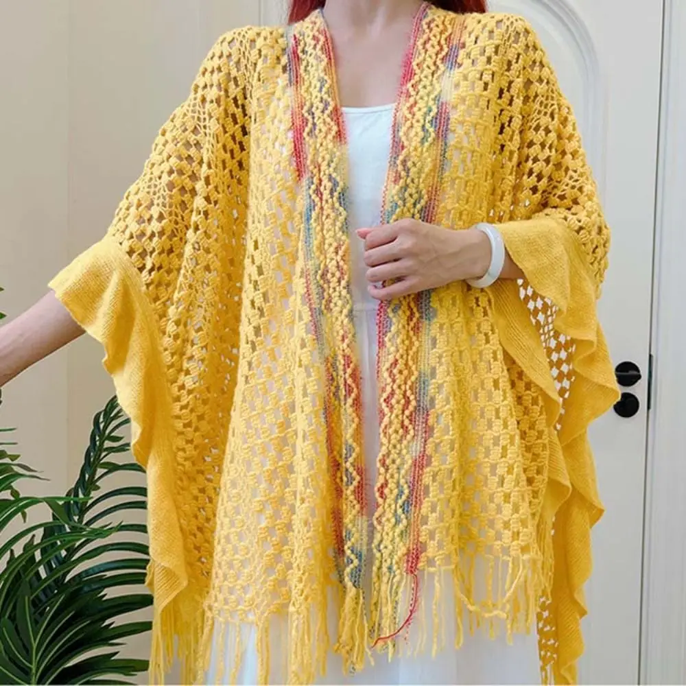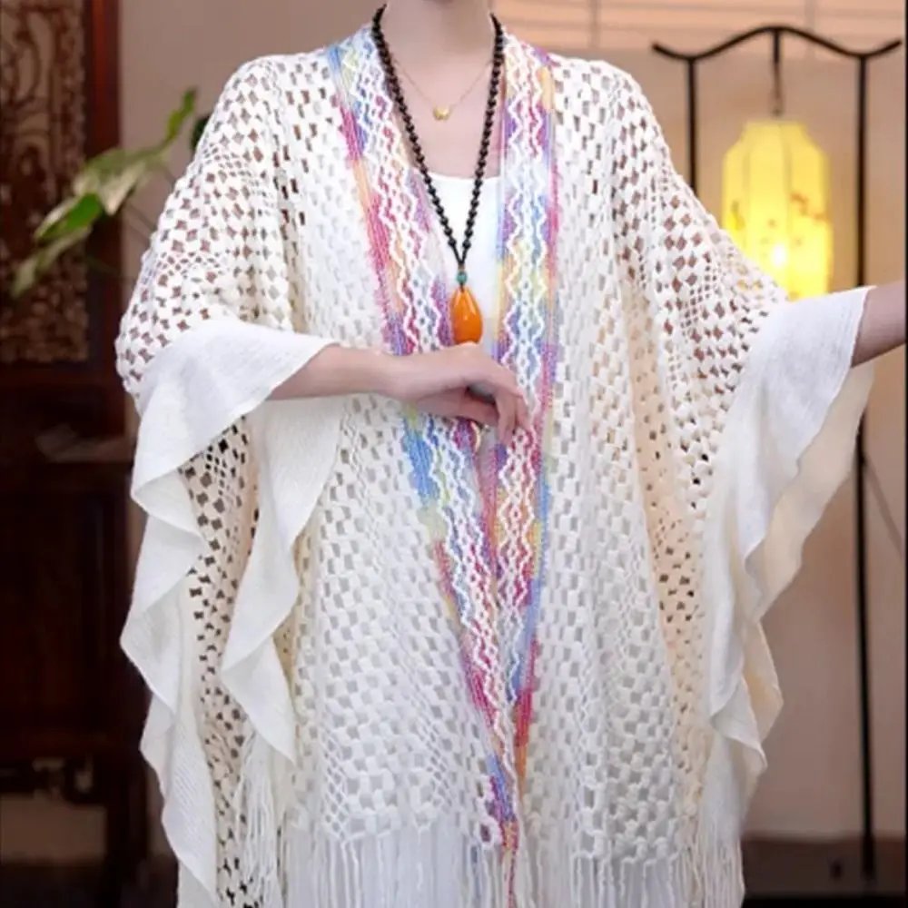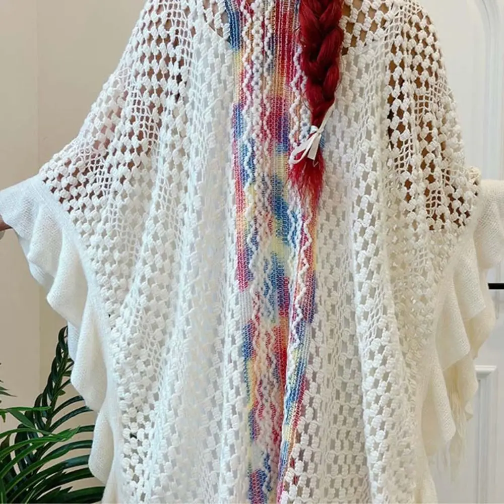Luxury Elegant Bohemian Knitted Shawl Ethnic Style Hollow Wraps Scarf Coat Cloak Scarves