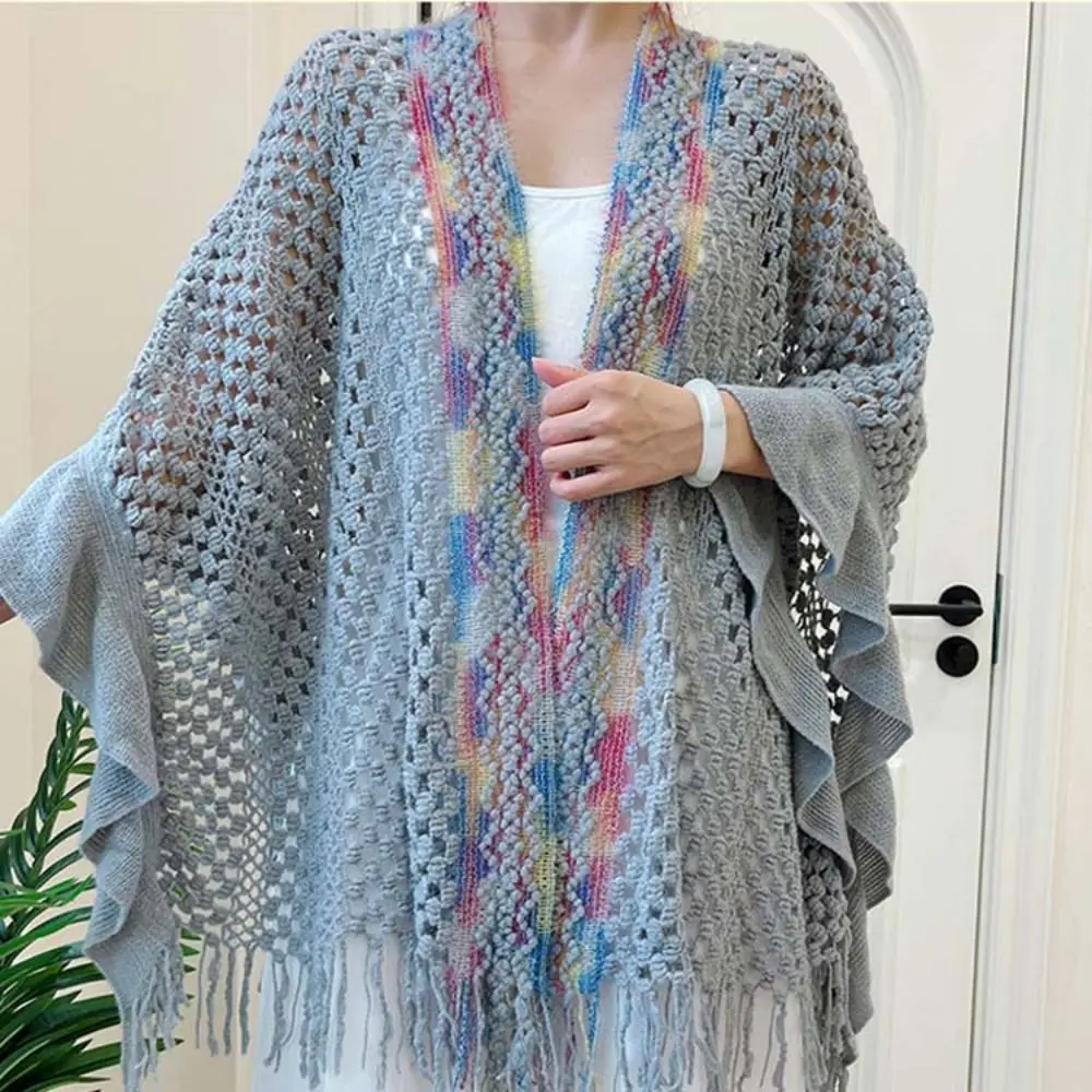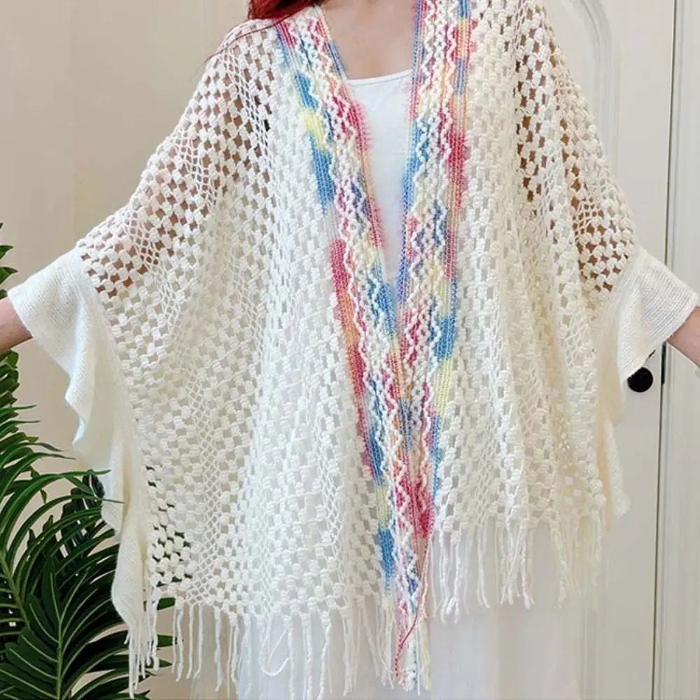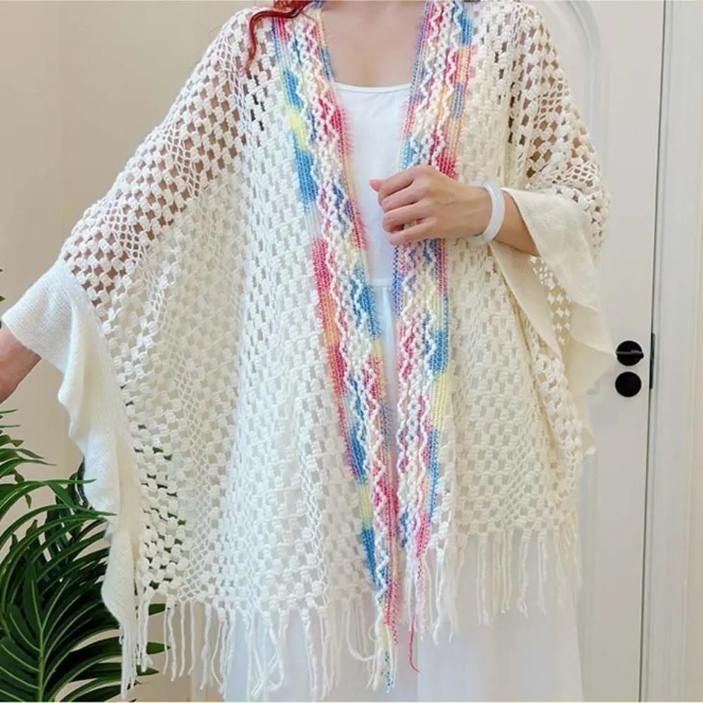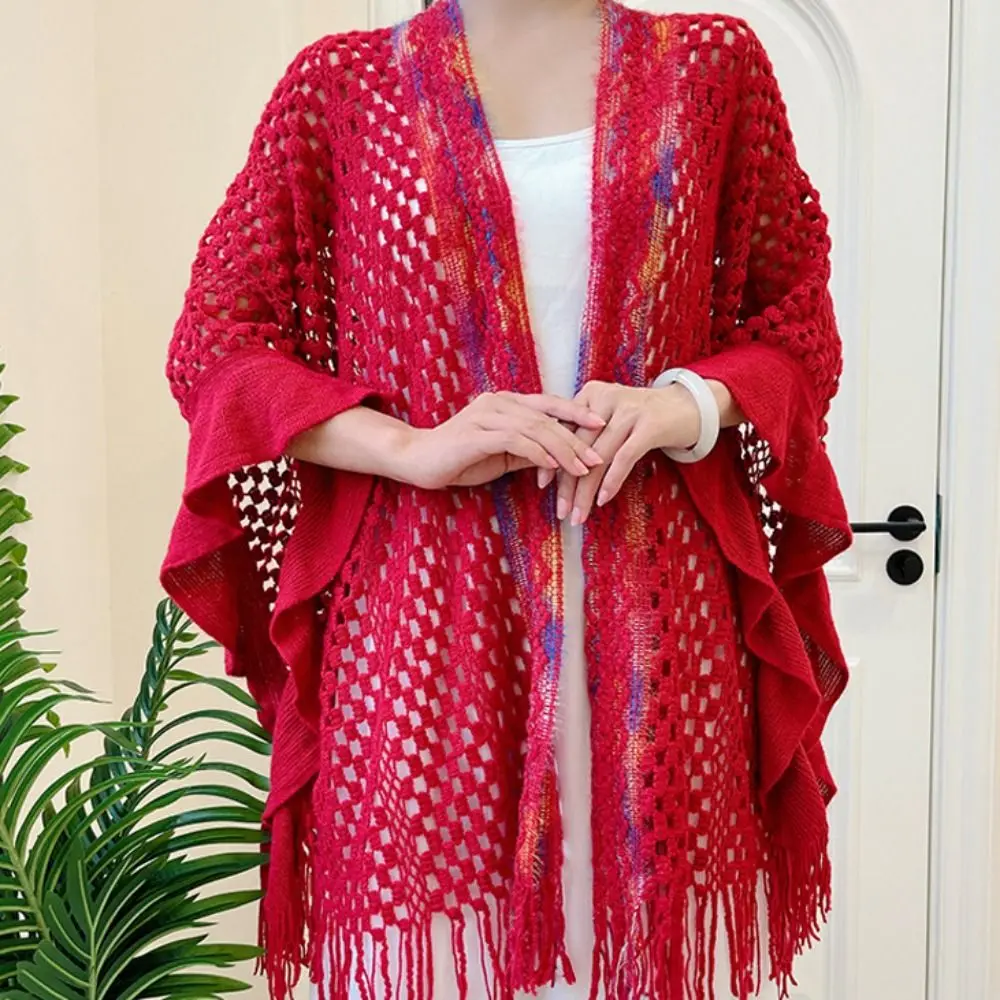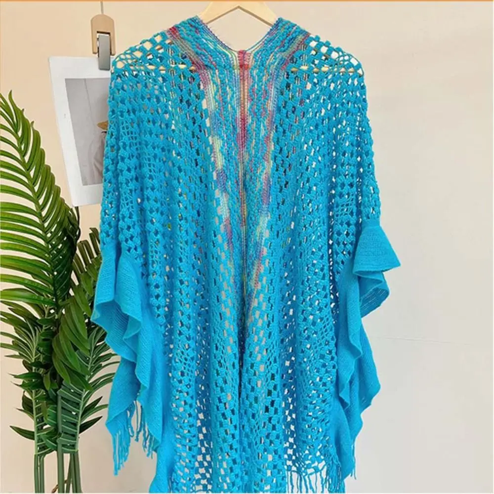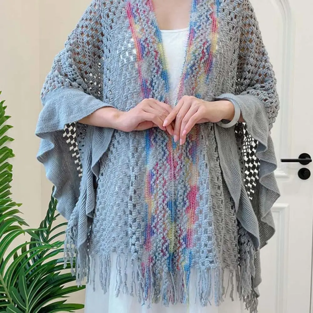 Luxury Elegant Bohemian Knitted Shawl Ethnic Style Hollow Wraps Scarf Coat Cloak Scarves
