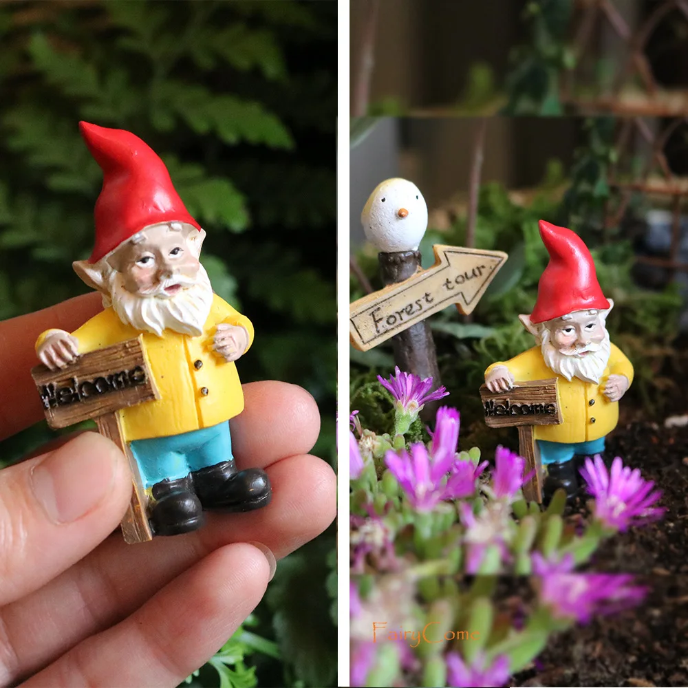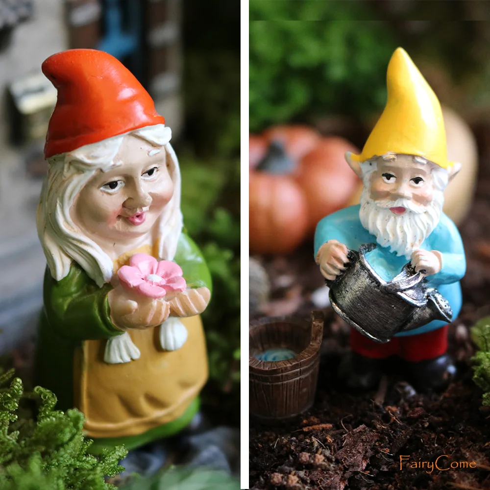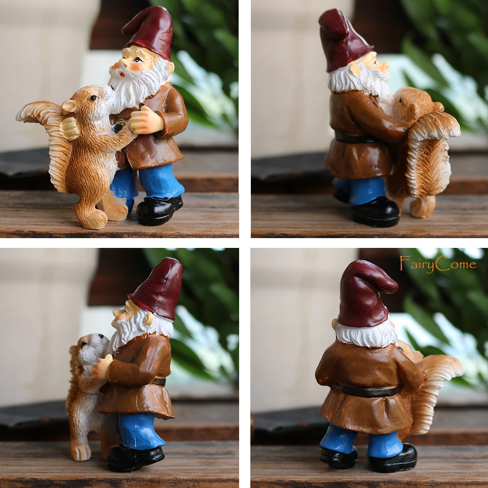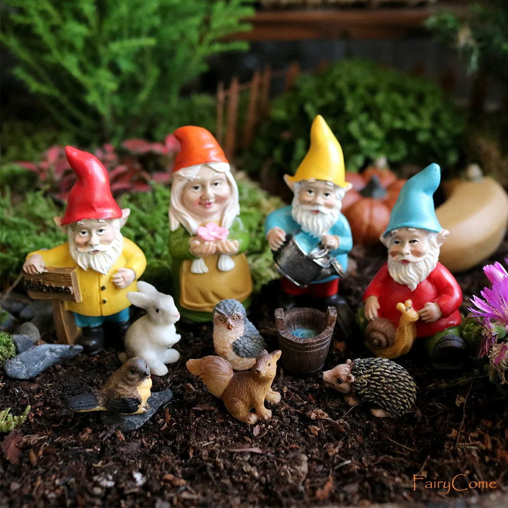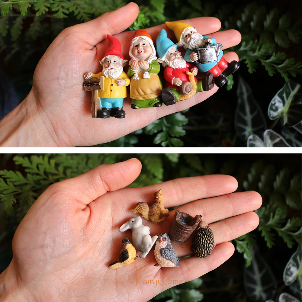 Miniature Fairy Garden Gnomes Figurines Set Resin Animals Mini Small Funny Dwarf Decorations Statues Ornaments Collection Indoor
