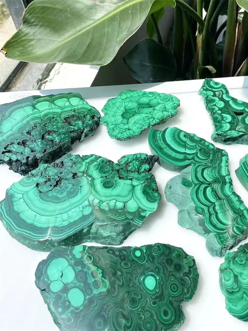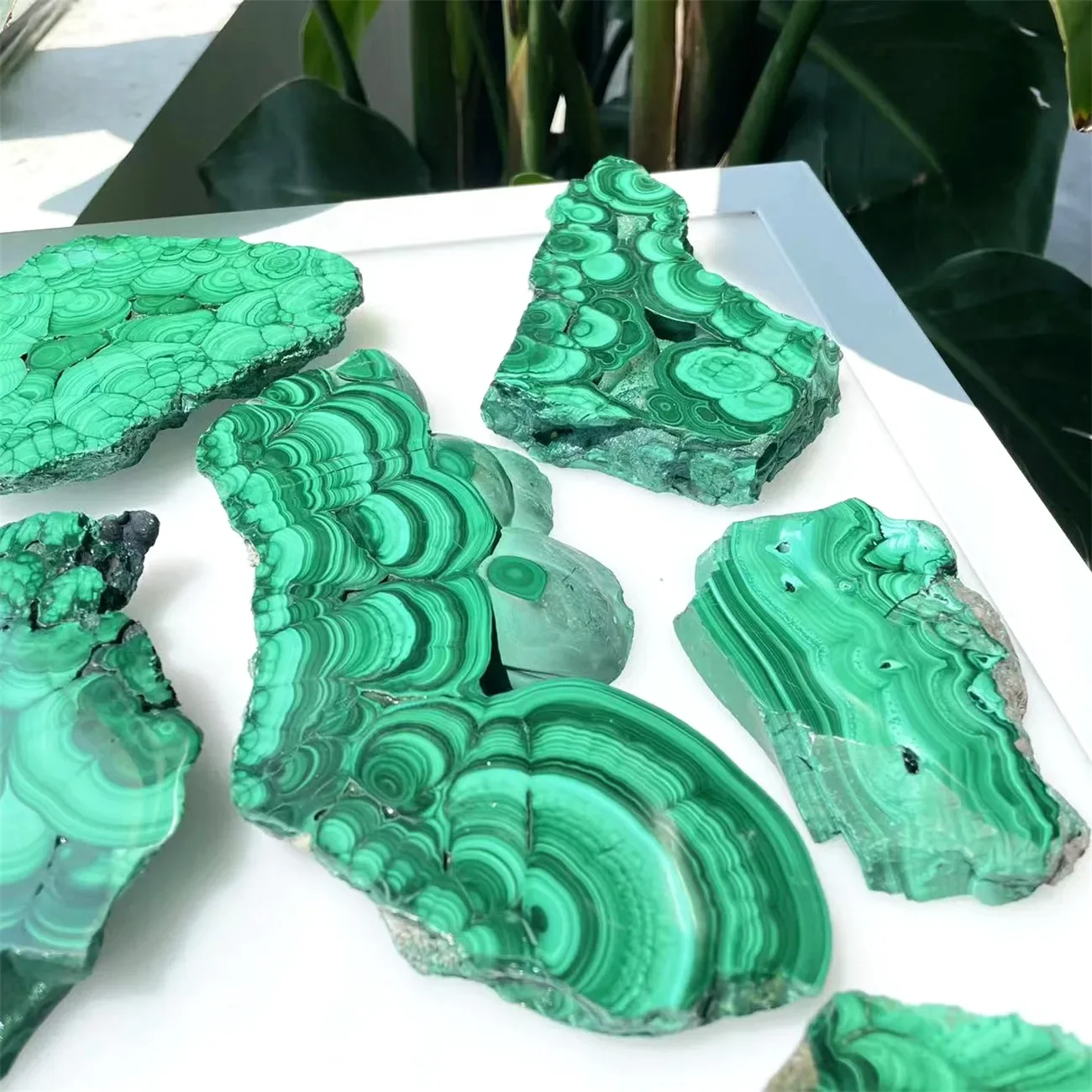 Natural Gemstone Crystal Plate Malachite Stone Home Spirit Decoration and Witchcraft Altar Magic Crystal Rune Healing 1pc