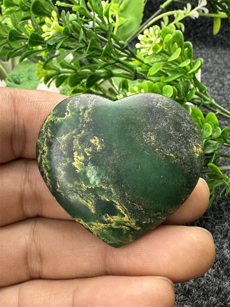 Natural Green Emerald Heart-Shaped Crystal Stone Love Carving Exquisite Palm Playing Stone Meditation Spiritual Energy Healing A