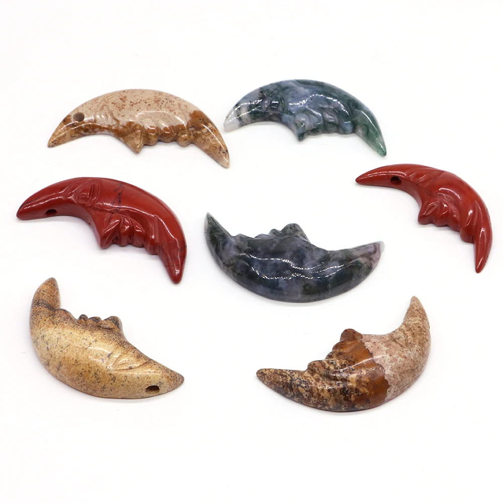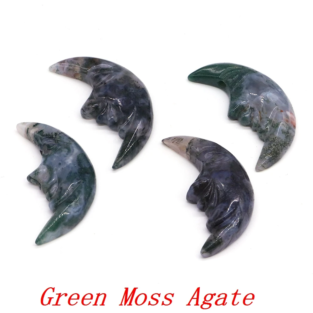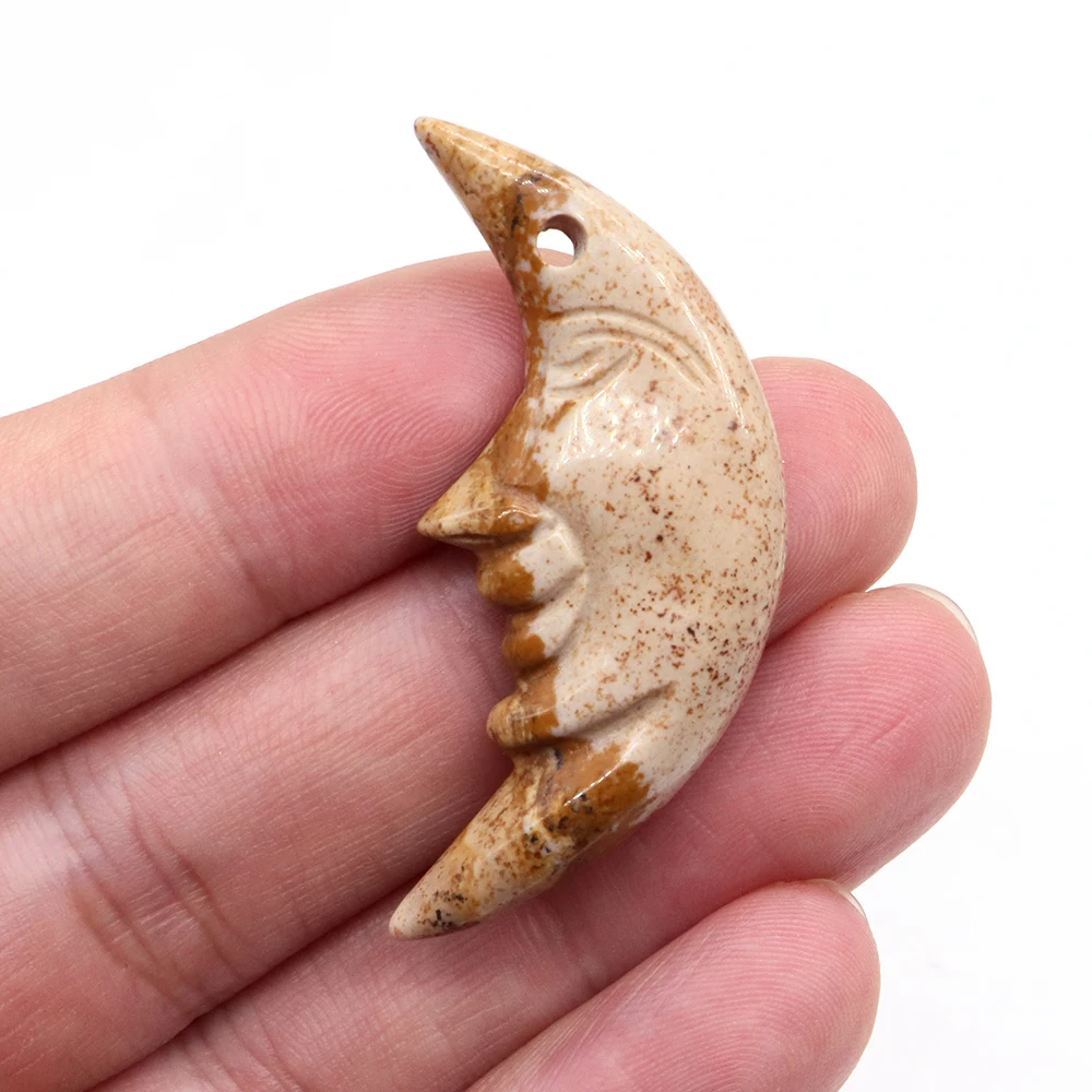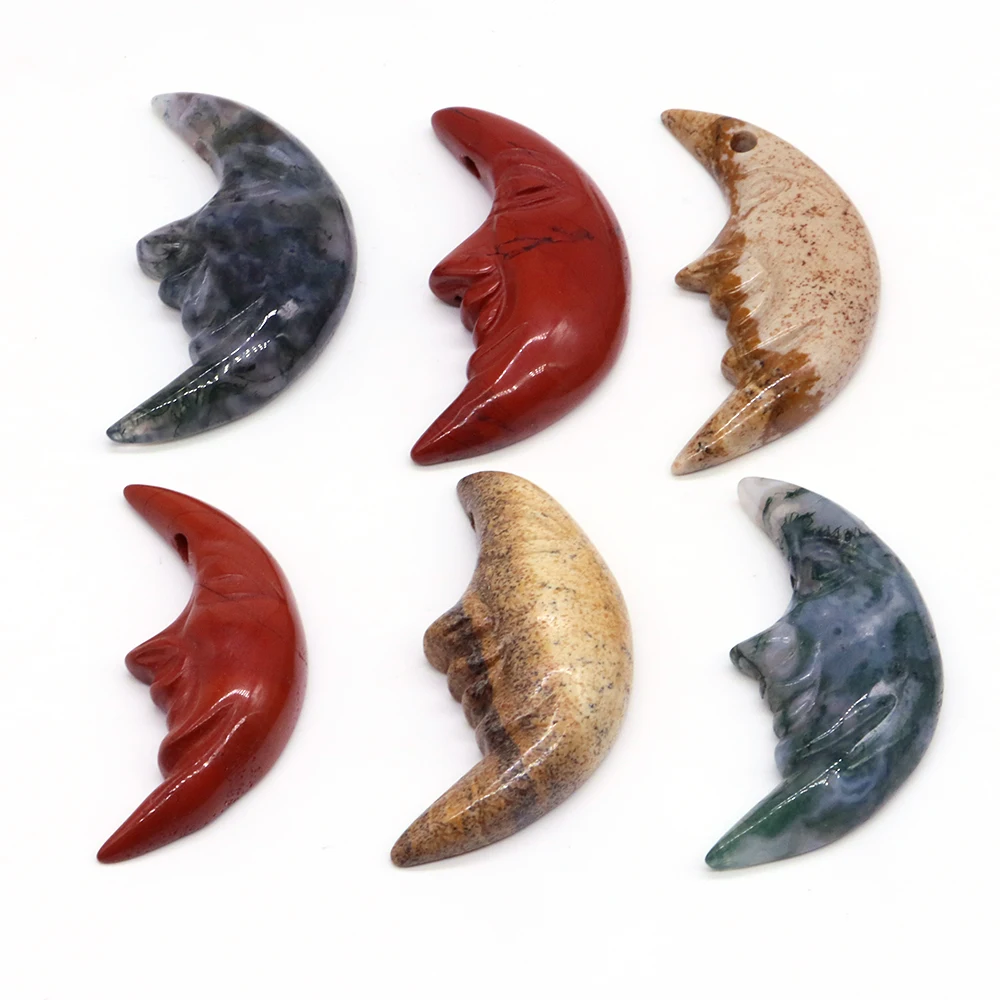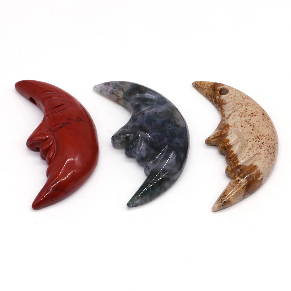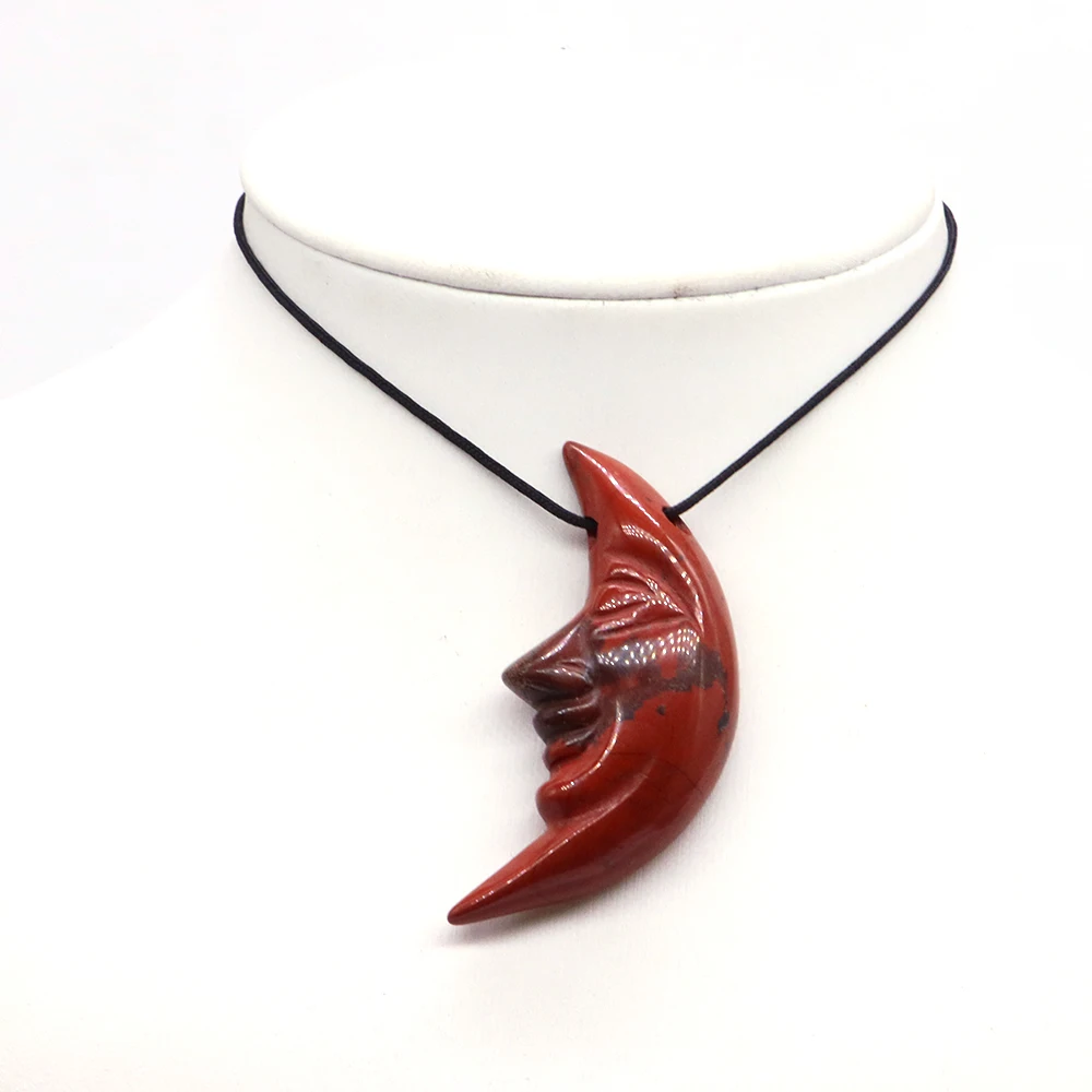 Natural Stone And Crystal Necklace for Women Lovely Smileing Moon Shaped Choker Healing Gemstone Long Pendant Men Women Jewelry