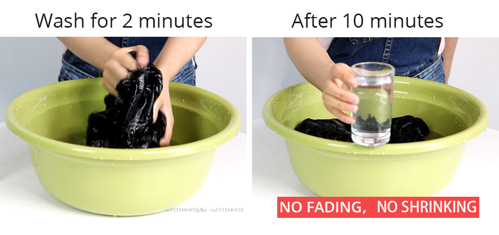 Washing with temperature not above 45, do not use bleach, Hand washable, machine washable,Don't soak.