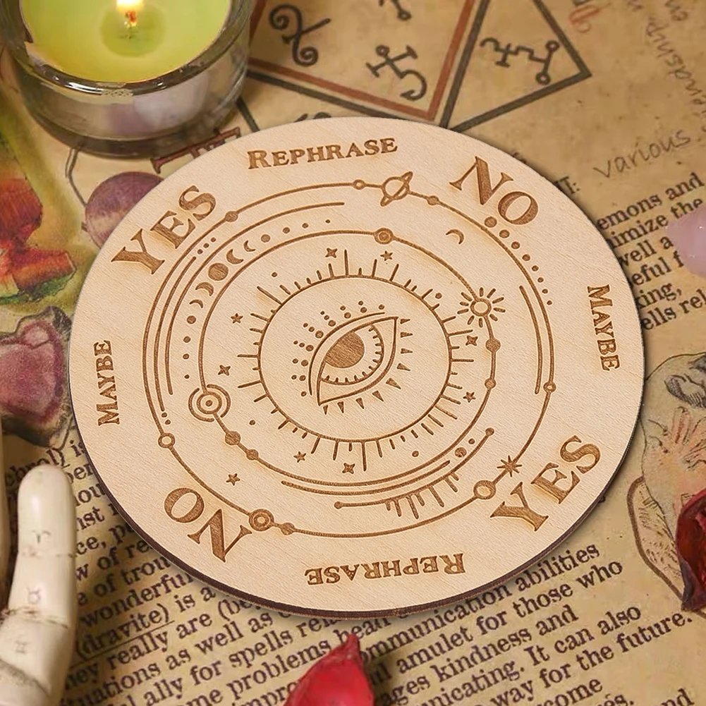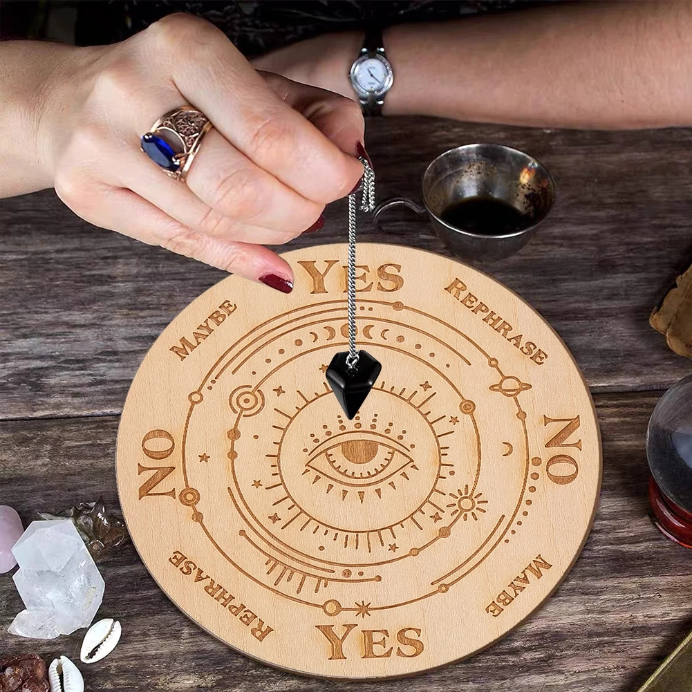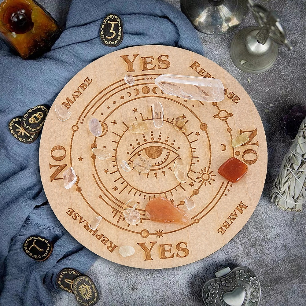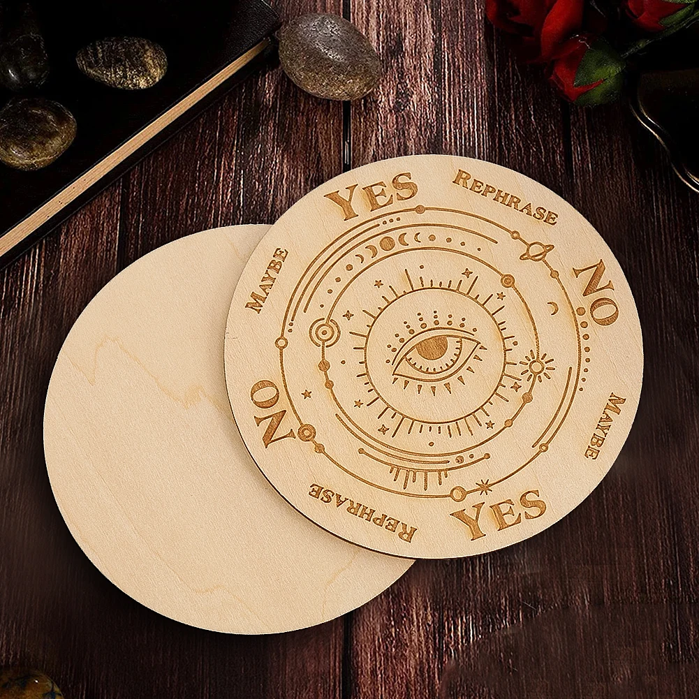 Round Wooden Boards Laser Carving Eye Providence Pendulum Board Magics Meditation Decision Plate Creative Witchs Altar Supplies