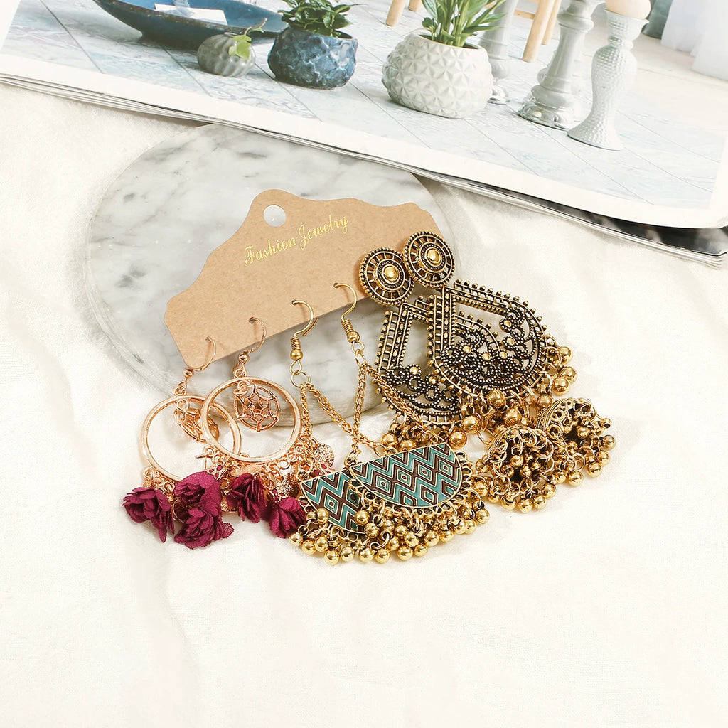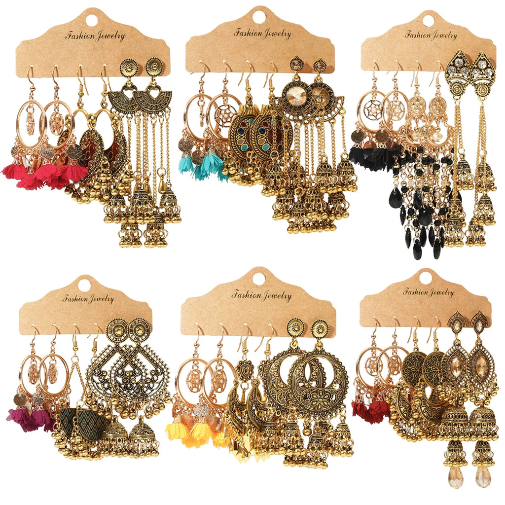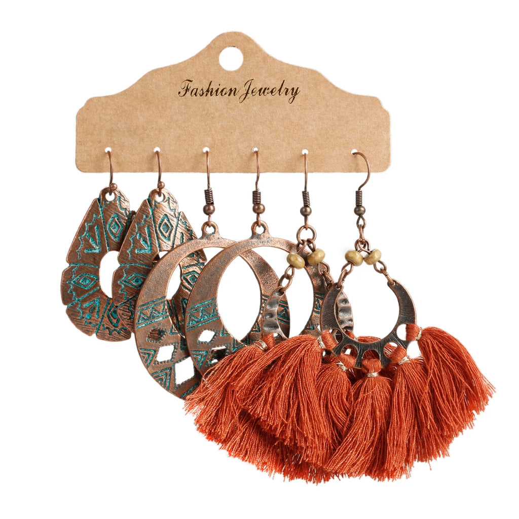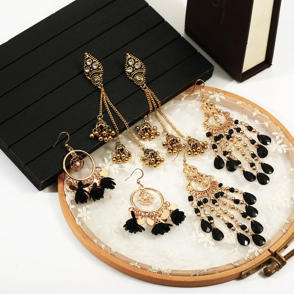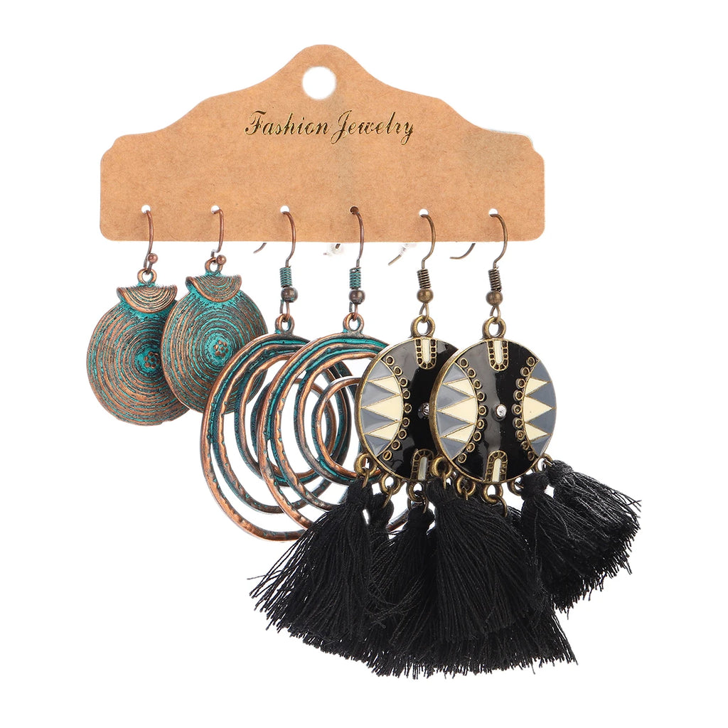 Vintage Ethnic New Tassel Earrings Set For Women Bohemian Multilayer Tassel Geometric Drop Earring Jewelry Indian Earrings