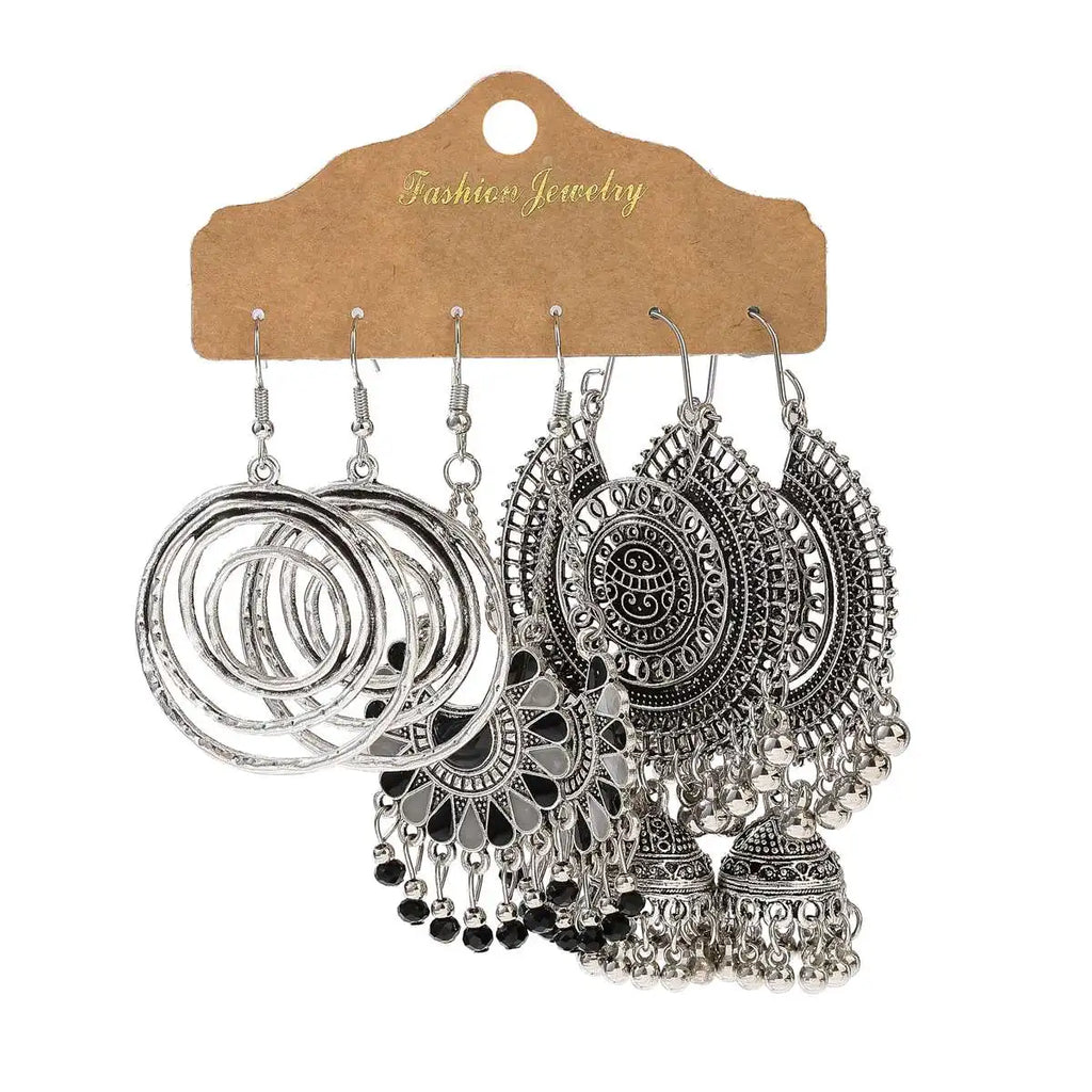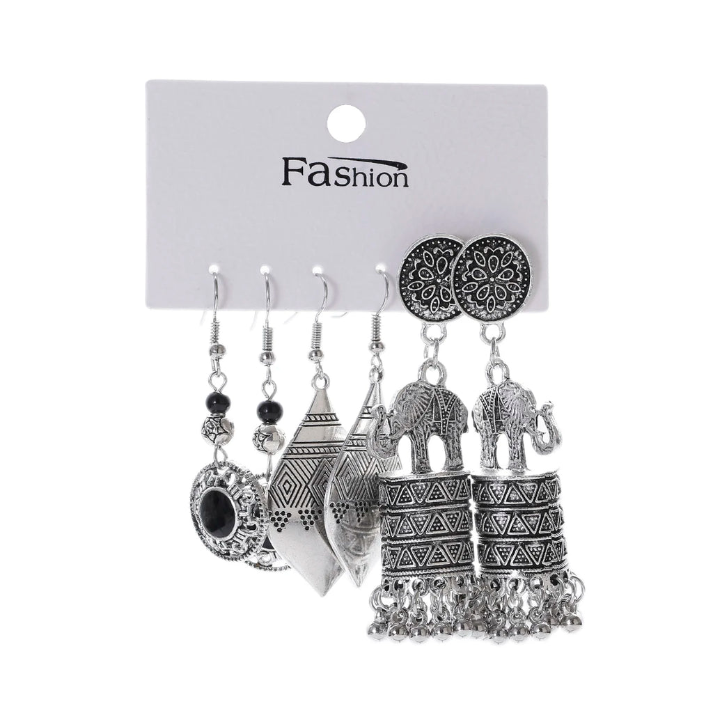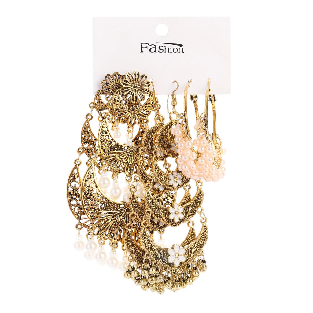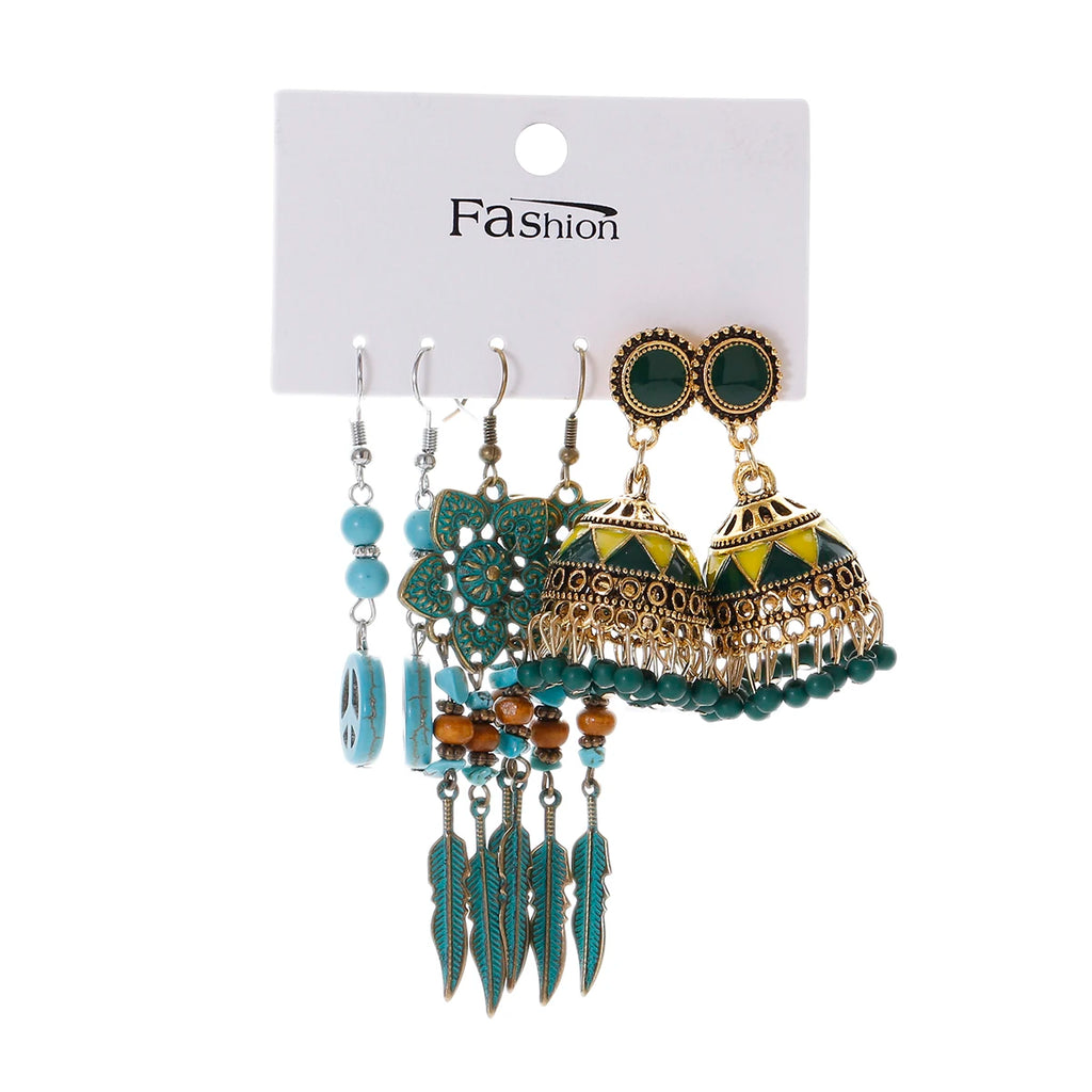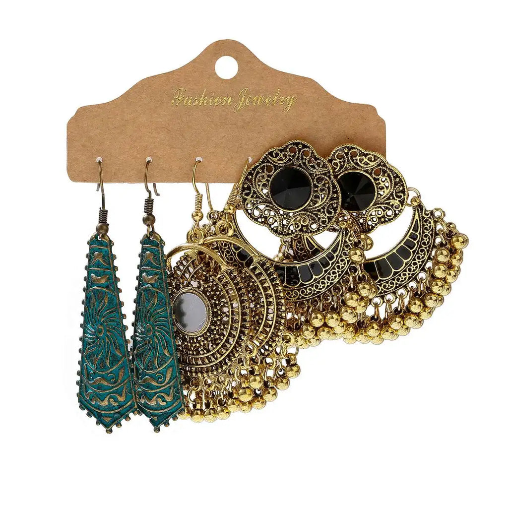 Vintage Ethnic New Tassel Earrings Set For Women Bohemian Multilayer Tassel Geometric Drop Earring Jewelry Indian Earrings