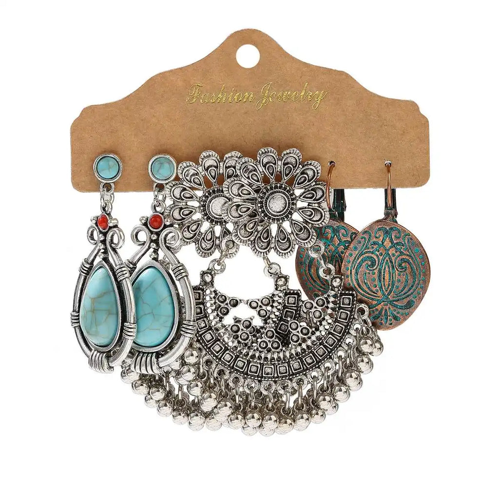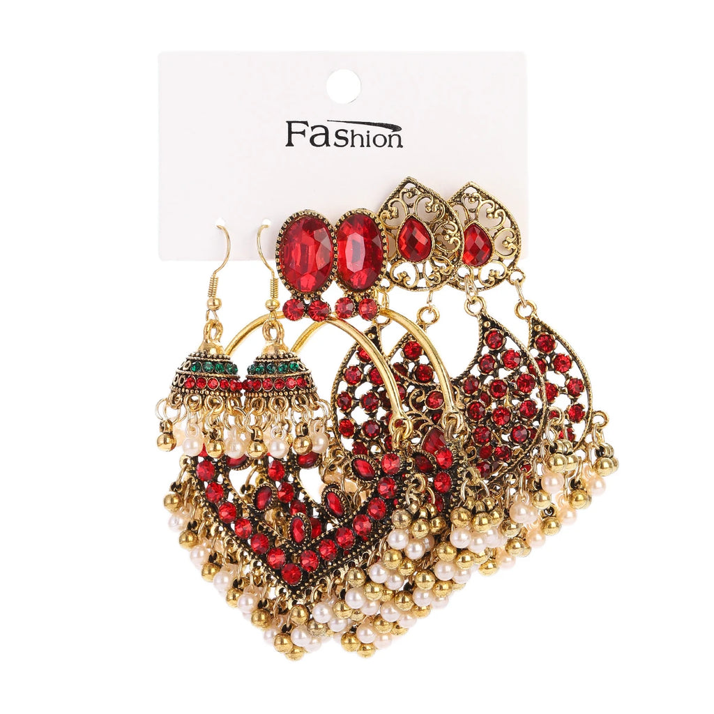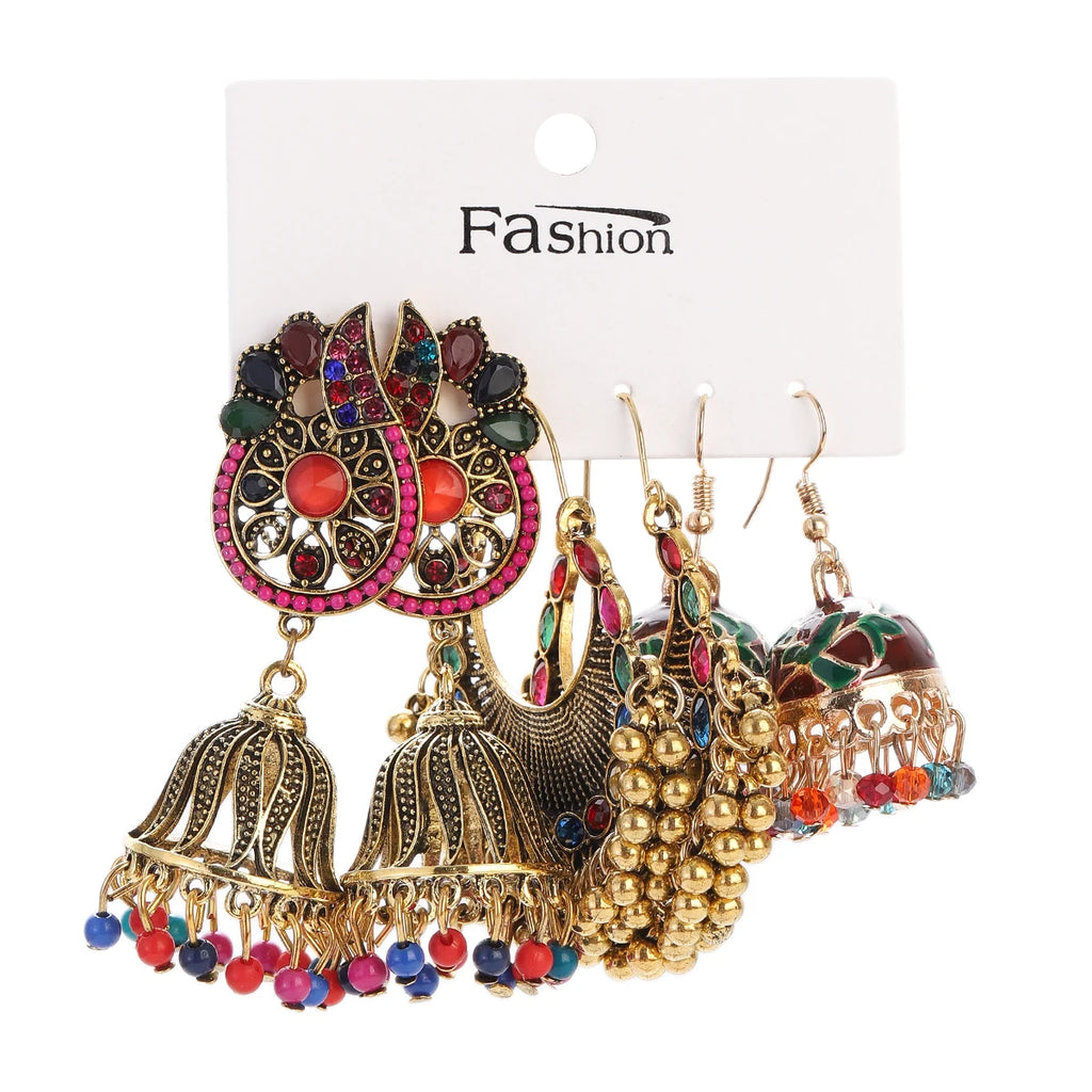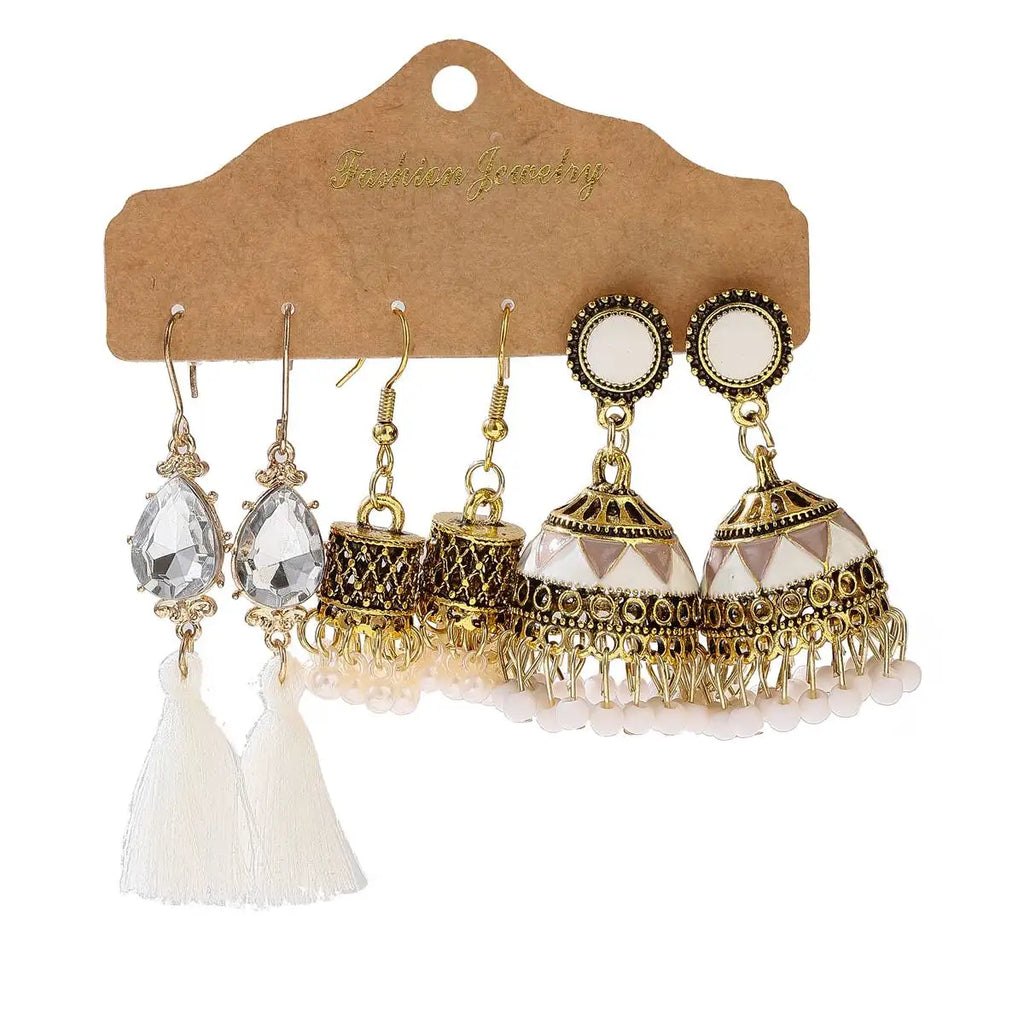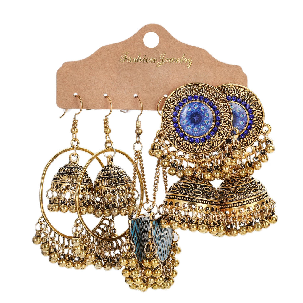 Vintage Ethnic New Tassel Earrings Set For Women Bohemian Multilayer Tassel Geometric Drop Earring Jewelry Indian Earrings