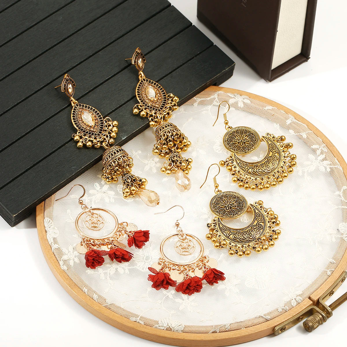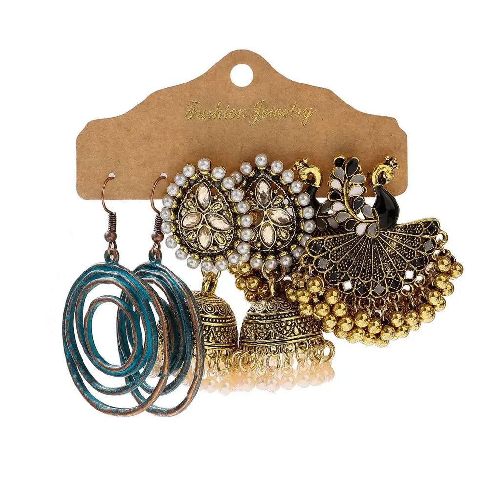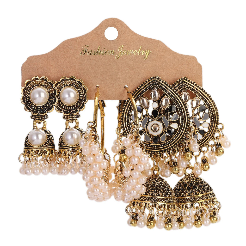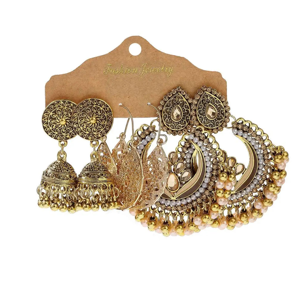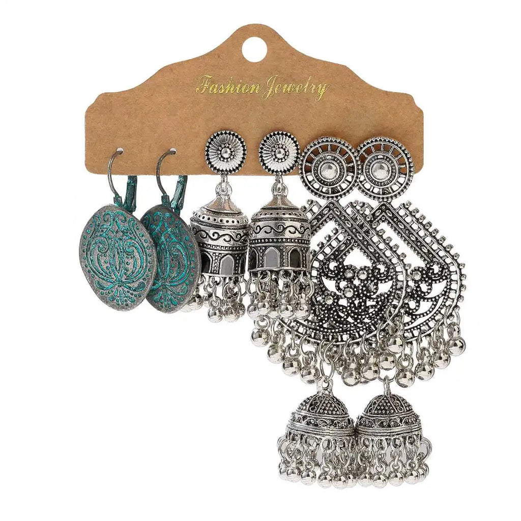 Vintage Ethnic New Tassel Earrings Set For Women Bohemian Multilayer Tassel Geometric Drop Earring Jewelry Indian Earrings