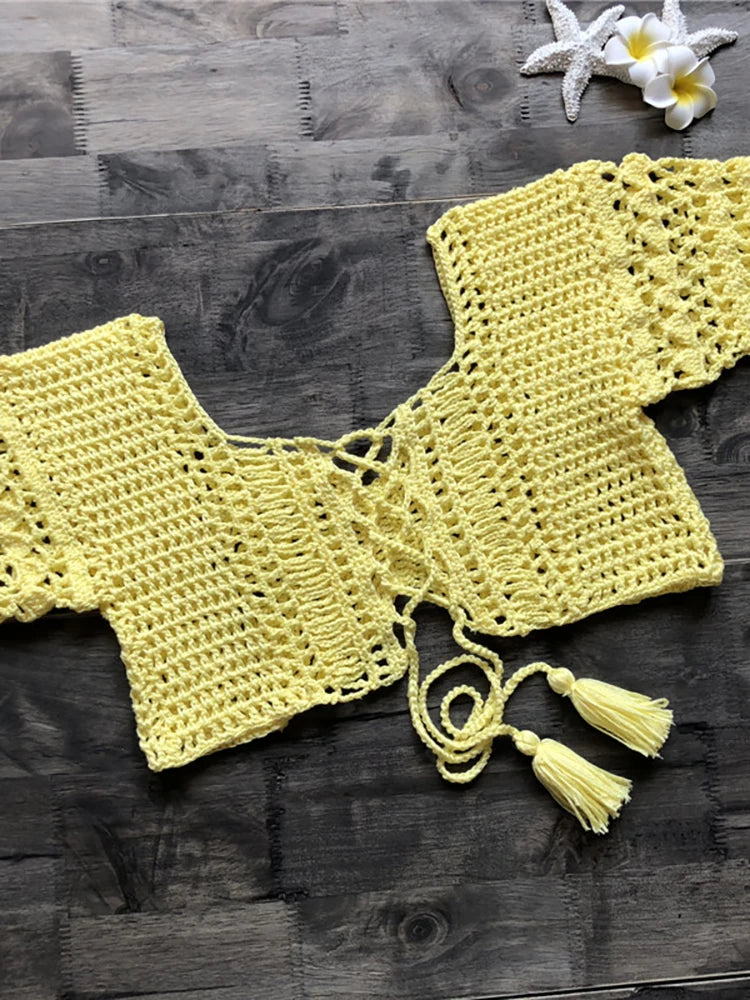 Women Sexy Crochet Hippie Bralette Knit Bra Boho Beach Bikini Crop Tops Swimwear Sexy Top Boho Bikini Top